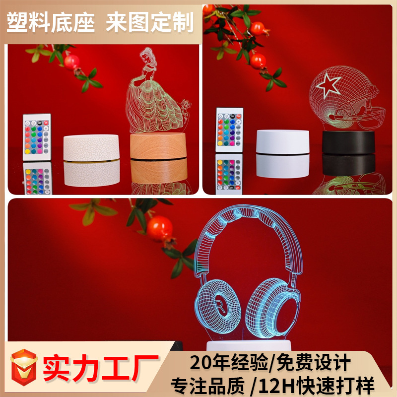 플라스틱 모조 나무 균열 도매 3d 야간 조명 라운드 사각형 검은색 쉘 균열 원격 제어 16 색 터치 USB 플러그인 모델