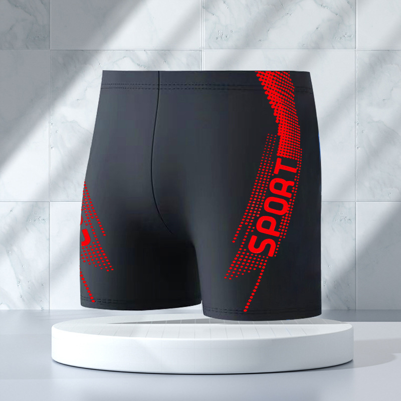 夏季薄款男士泳裤平角印花四角锦纶温泉男游泳裤运动速干泳裤批发