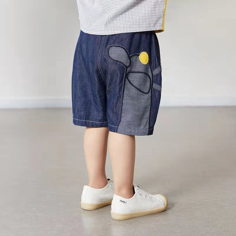 아동복 데님 반바지 소년 중소 어린이 여름 착용 새로운 입체 장식 자수 느슨한 캐주얼 바지 4 점 바지