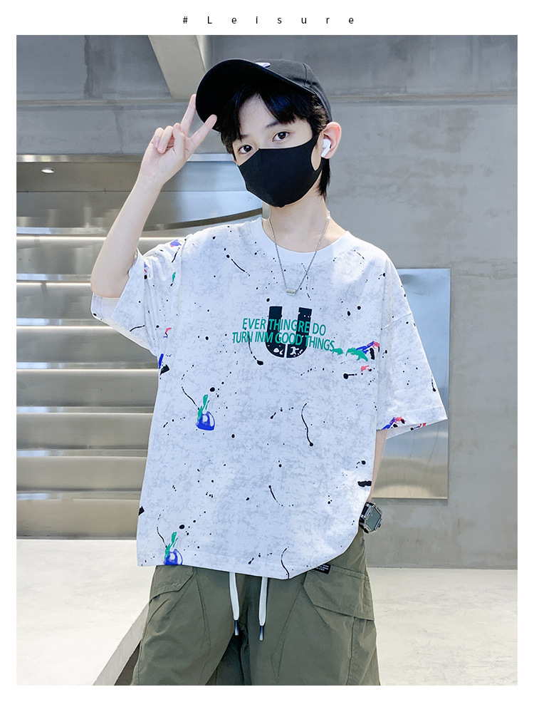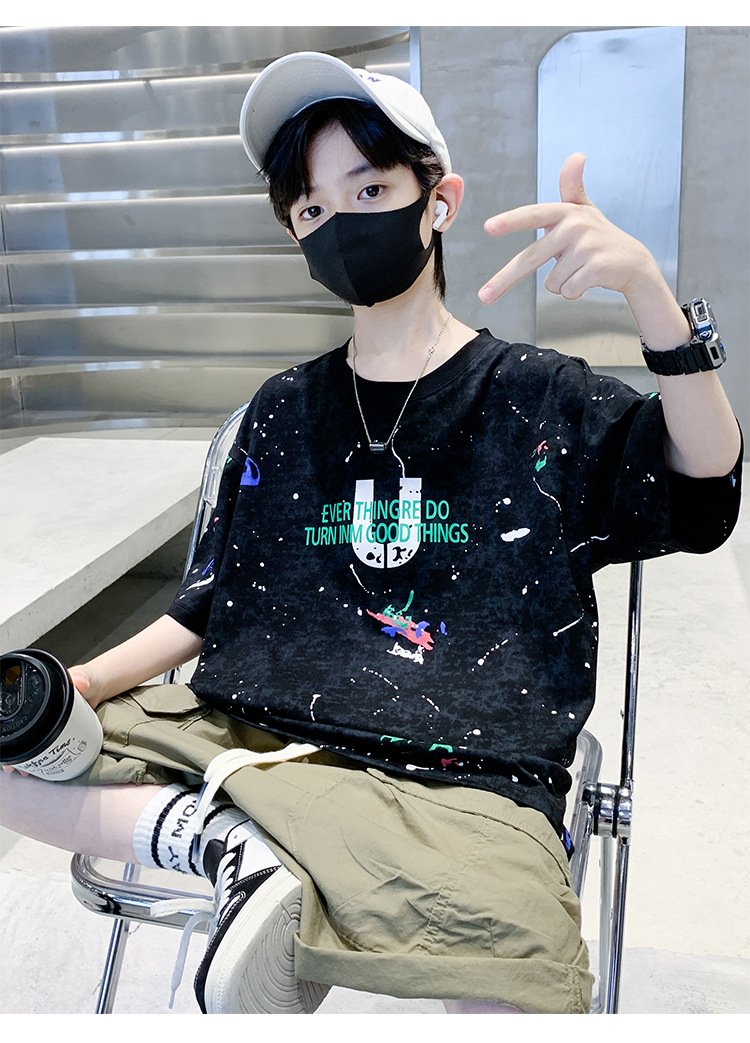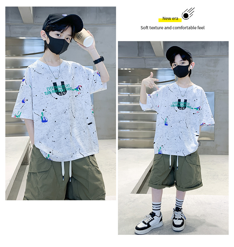 아동복 소년 반팔 티셔츠 여름 착용 2024 새로운 어린이 여름 중대형 어린이 여름 스타일 소년 유행 멋진 도매