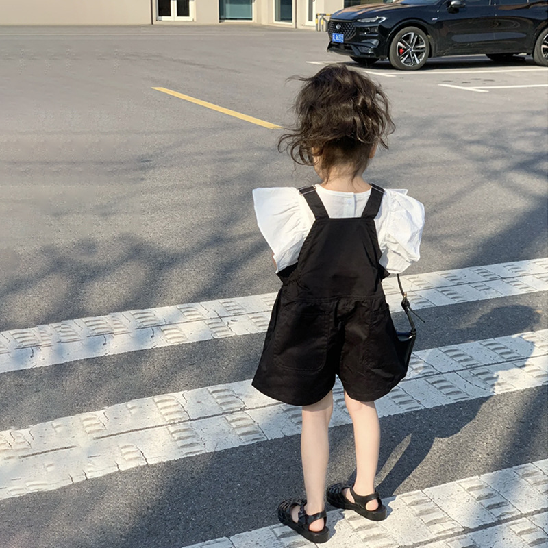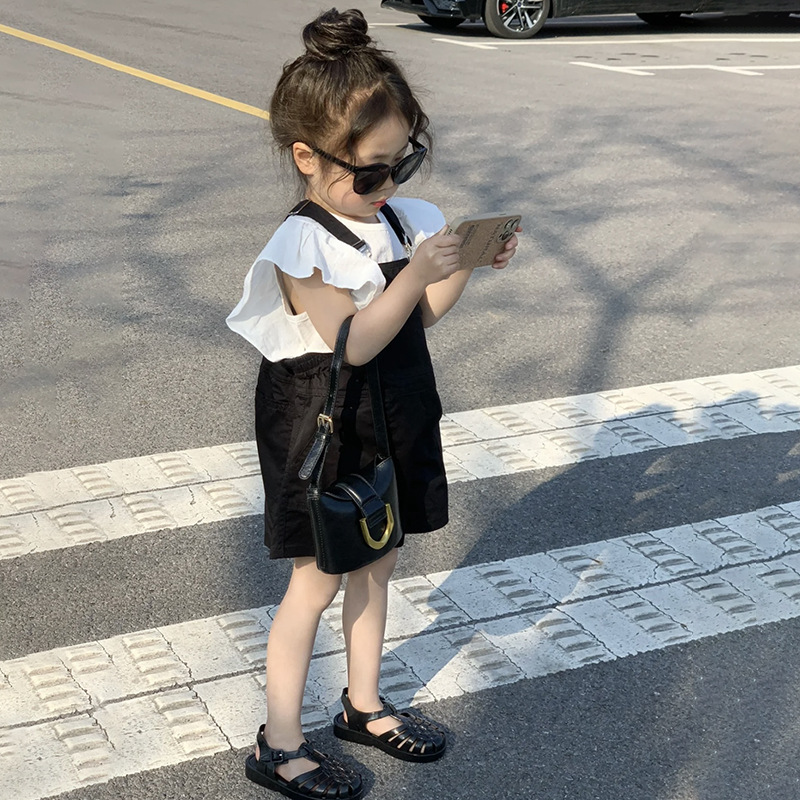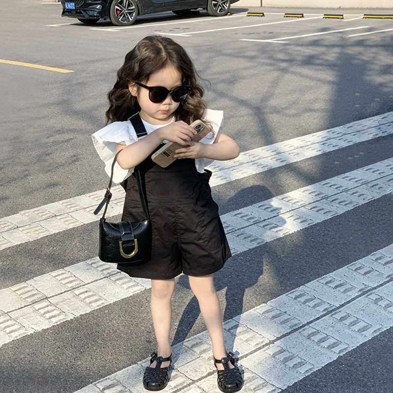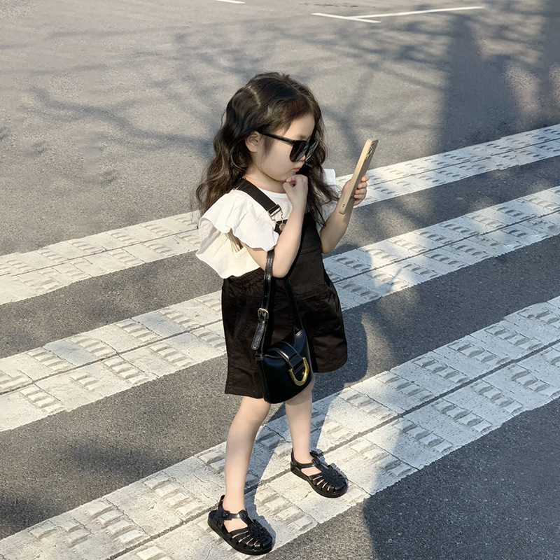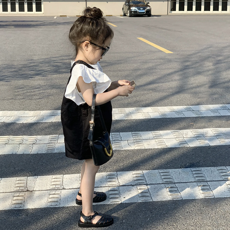 어린이 의류 2023 여름 새로운 소녀의 한국어 버전 패션 비행 소매 조끼 유행 달콤한 세트