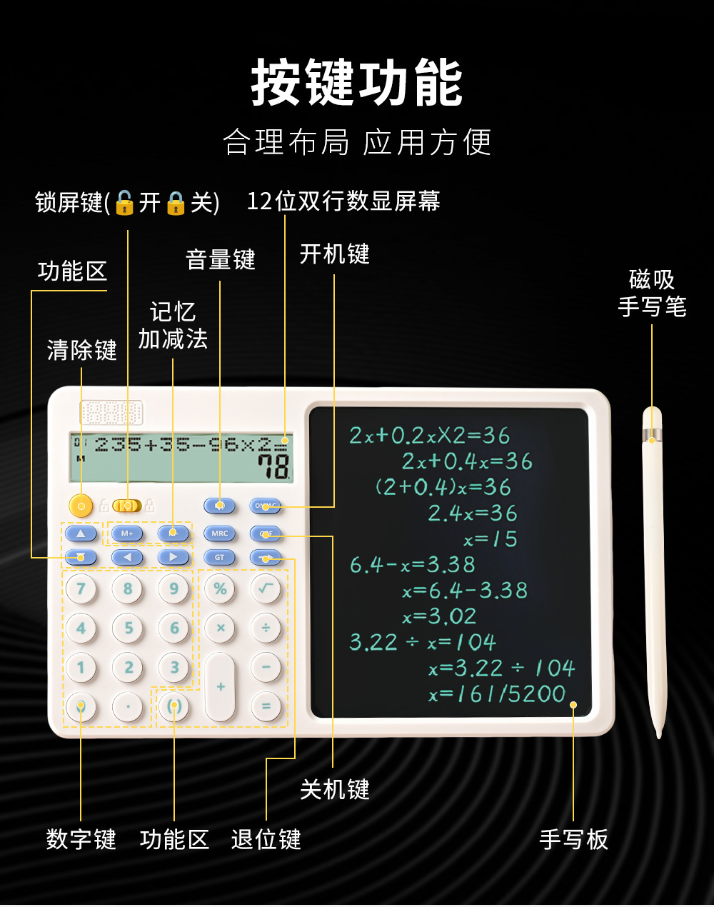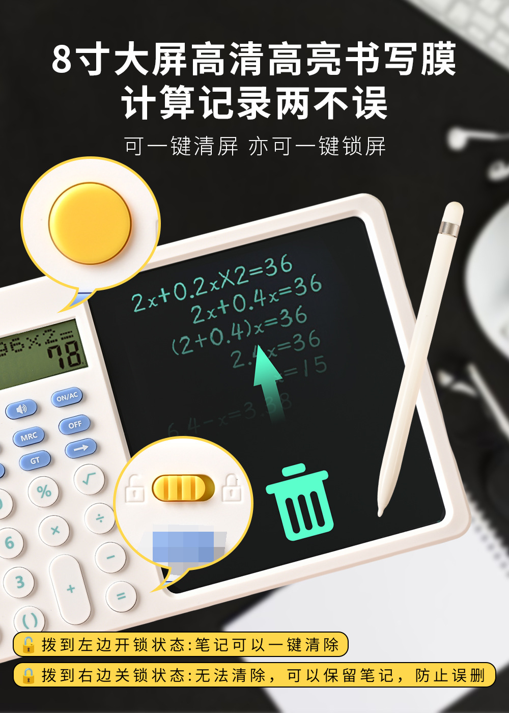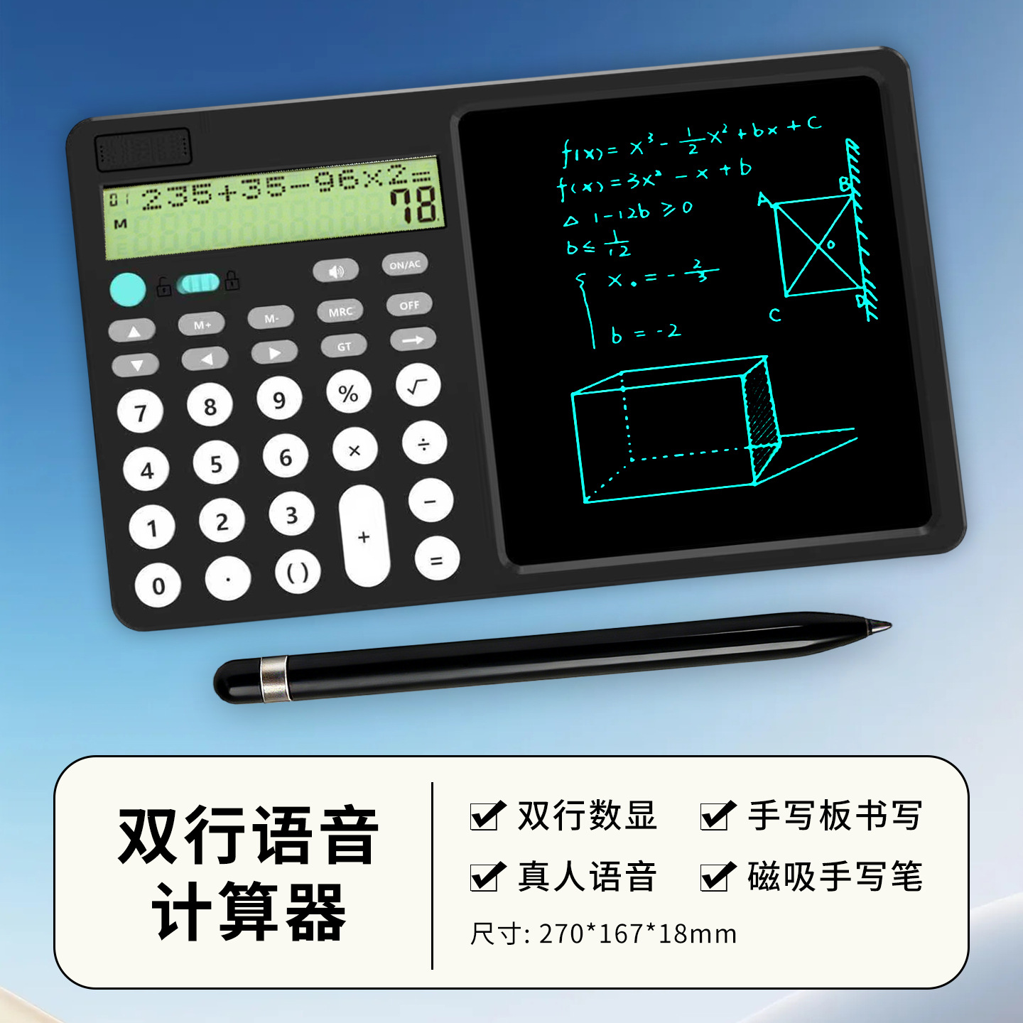 기능 계산기 필기 보드 투인원 다기능 접이식 조용한 휴대용 과학 계산기 시험용스토어 가기