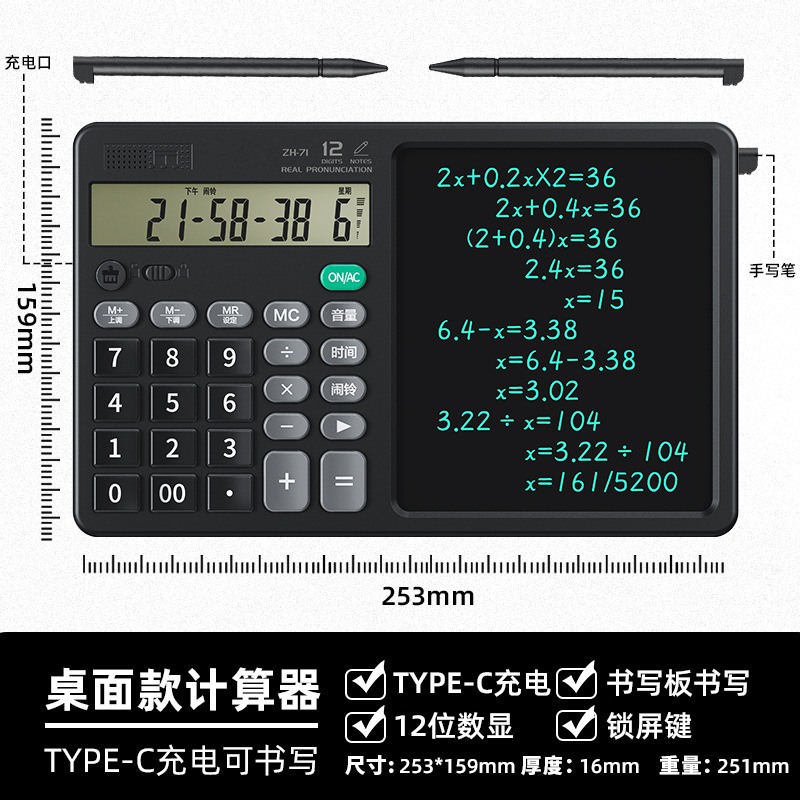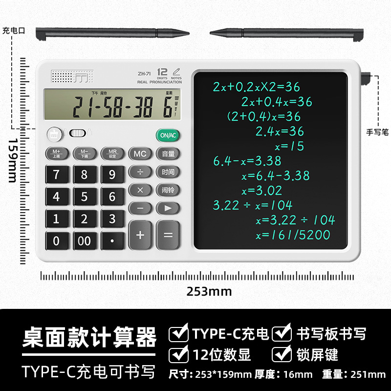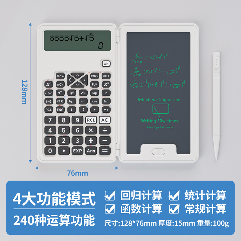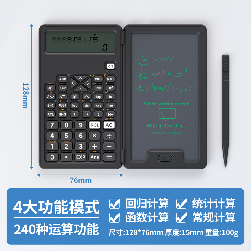 기능 계산기 필기 보드 투인원 다기능 접이식 조용한 휴대용 과학 계산기 시험용