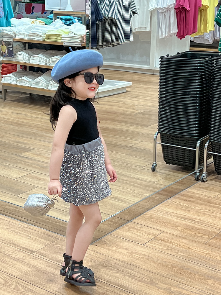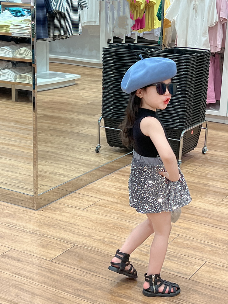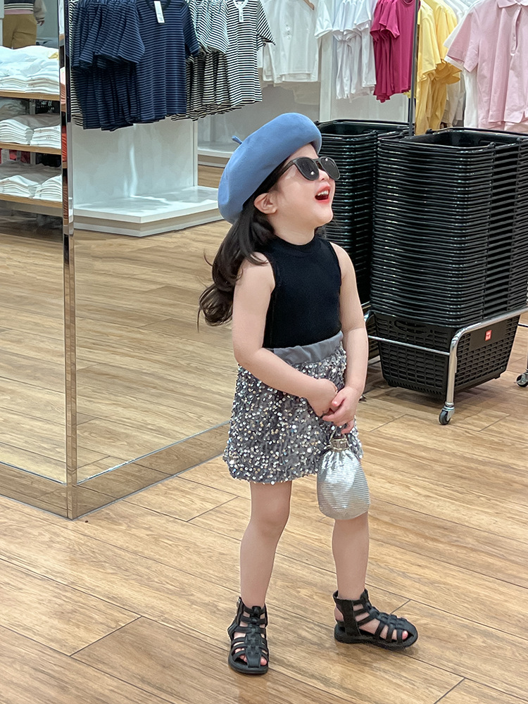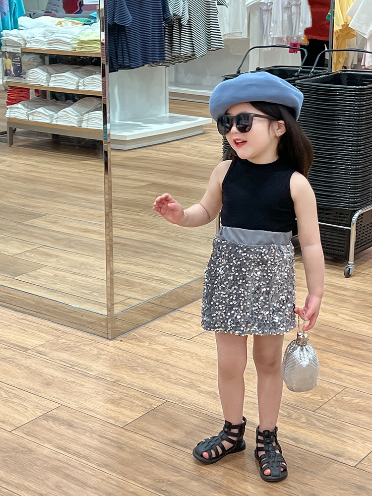 한국 아동복 2023 여름 새 여아 우아한 니트 민소매 조끼 유행 스팽글 스커트 세트