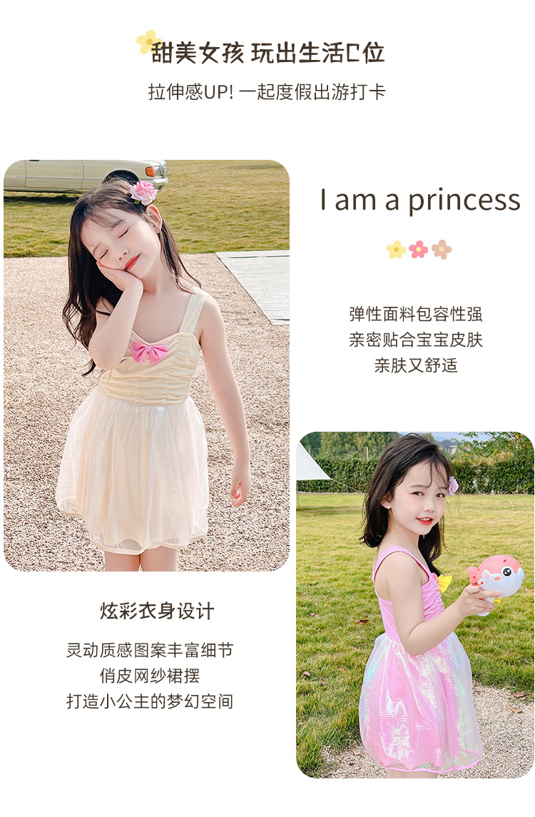 어린이 수영복, 소녀 및 중년 어린이 원피스 공주 투투 스커트, 귀여운 아기 메쉬 휴가 수영복 여름을 직접 판매하는 제조업체