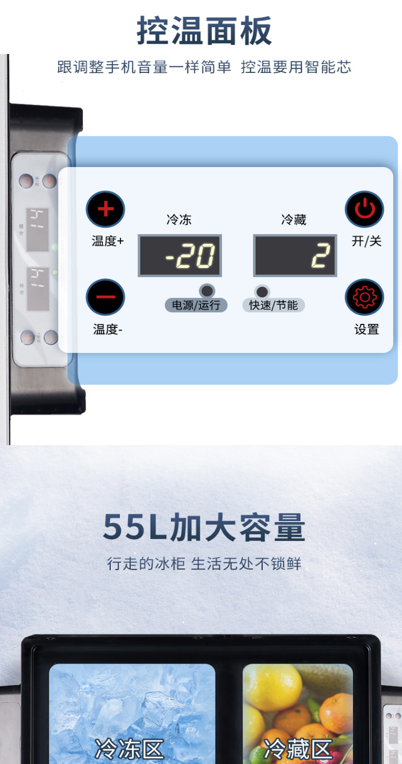 Xinfei 자동차 냉장고 대용량 압축기 냉동 및 냉장 이중 온도 대형 트럭 자동차 가정용 이중 목적 냉동고 휴대용스토어 가기