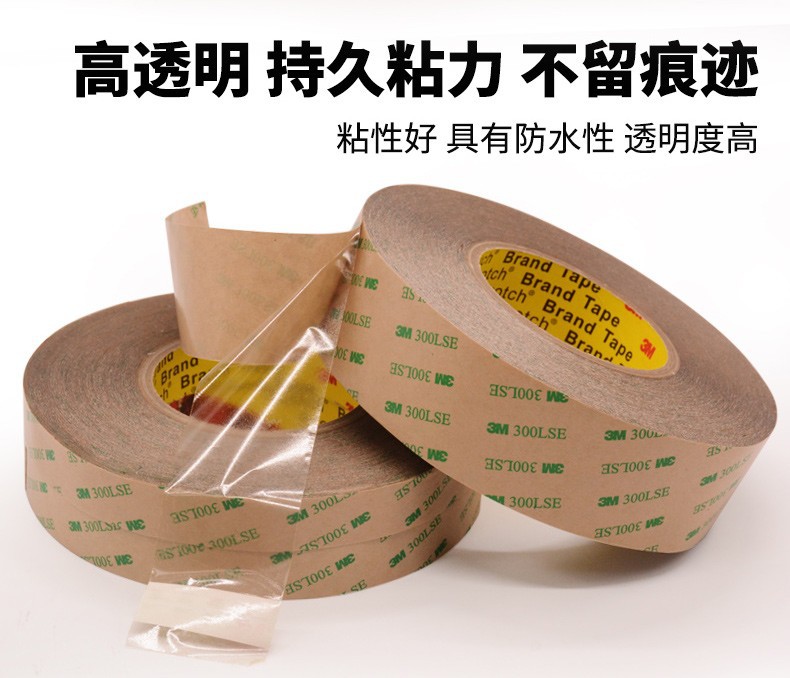 3M9495LE双面胶是3M双面胶中一款PET基材双面胶,属于3M300LSE系列双面胶,由透明PET双面涂布丙希酸胶制成,胶带颜色为透明。
