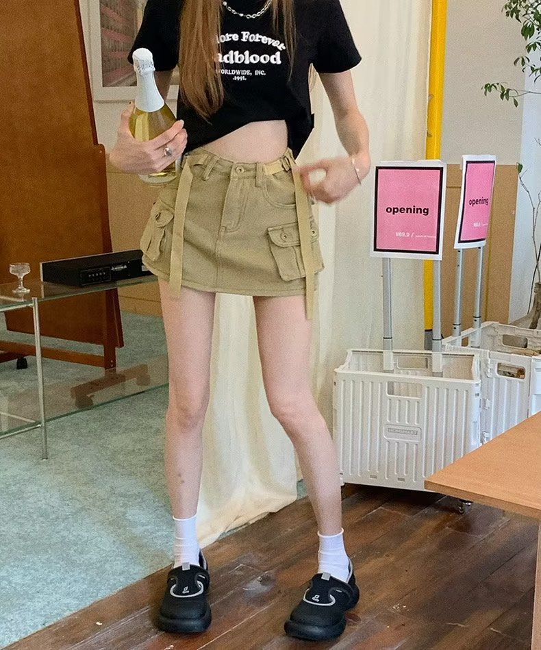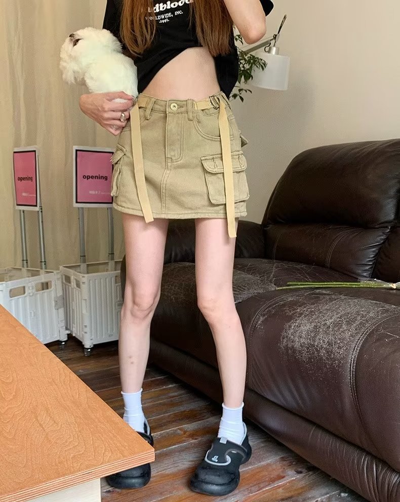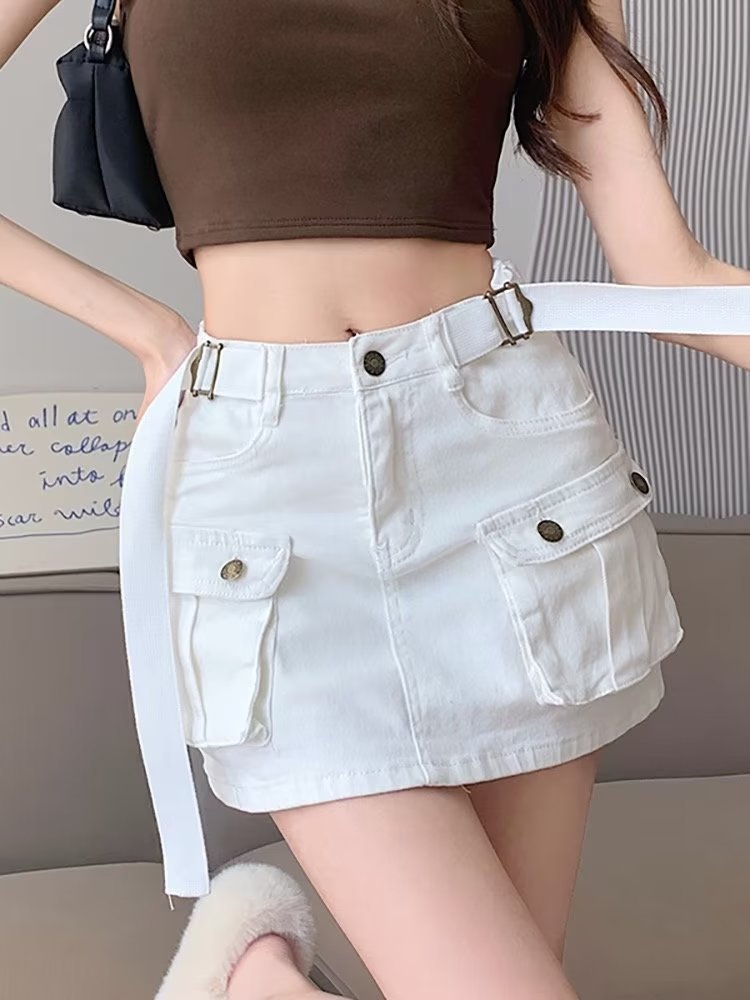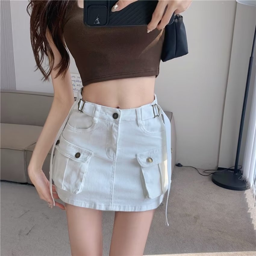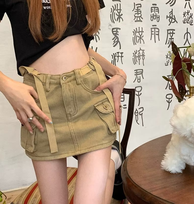 작업복 데님 스커트 여자의 여름 미국 낮은 허리 슬림 A-라인 미니 스커트 뜨거운 소녀 엉덩이 스커트 스커트 퀼로트