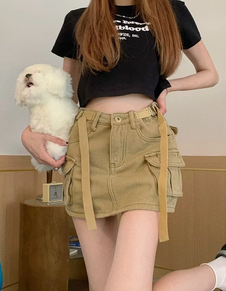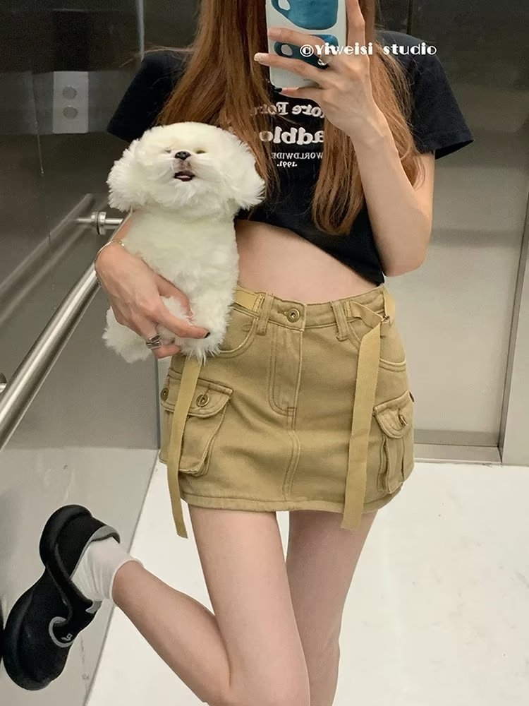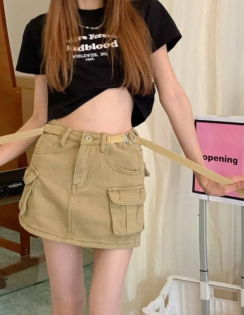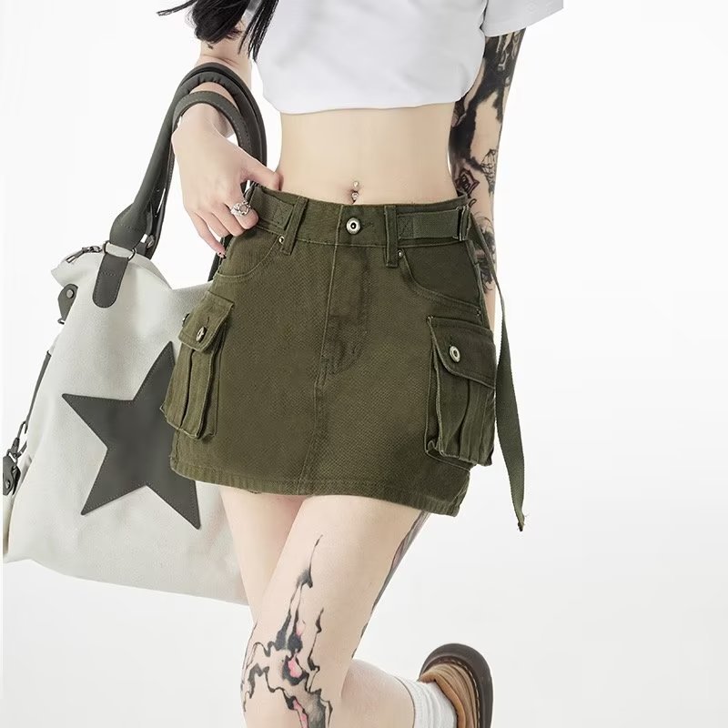 작업복 데님 스커트 여자의 여름 미국 낮은 허리 슬림 A-라인 미니 스커트 뜨거운 소녀 엉덩이 스커트 스커트 퀼로트