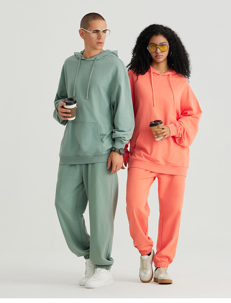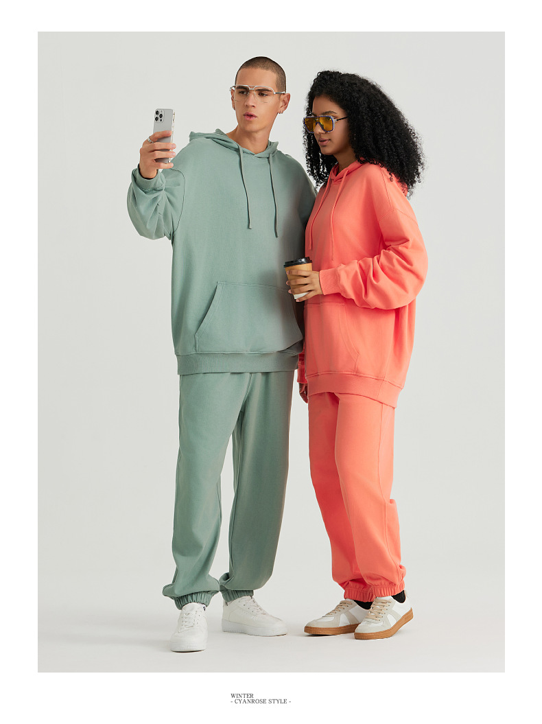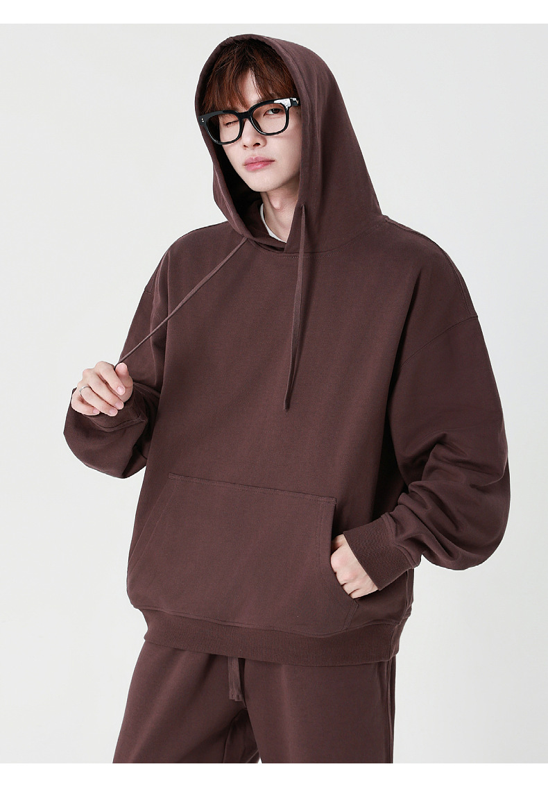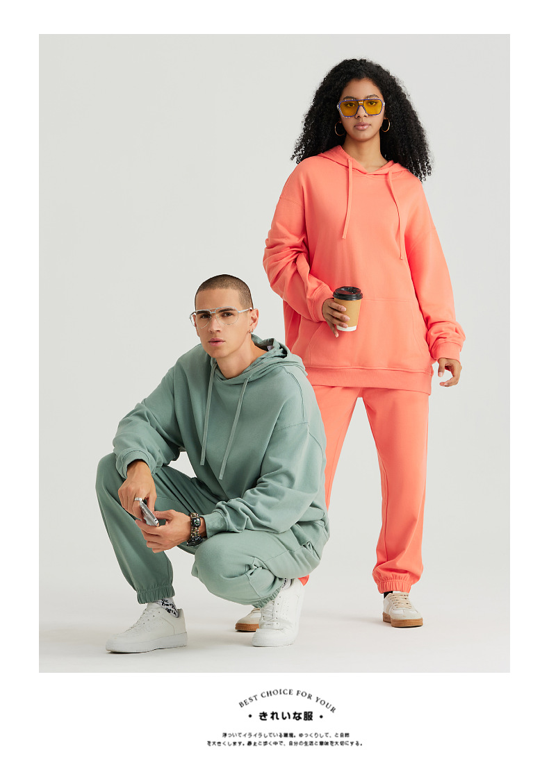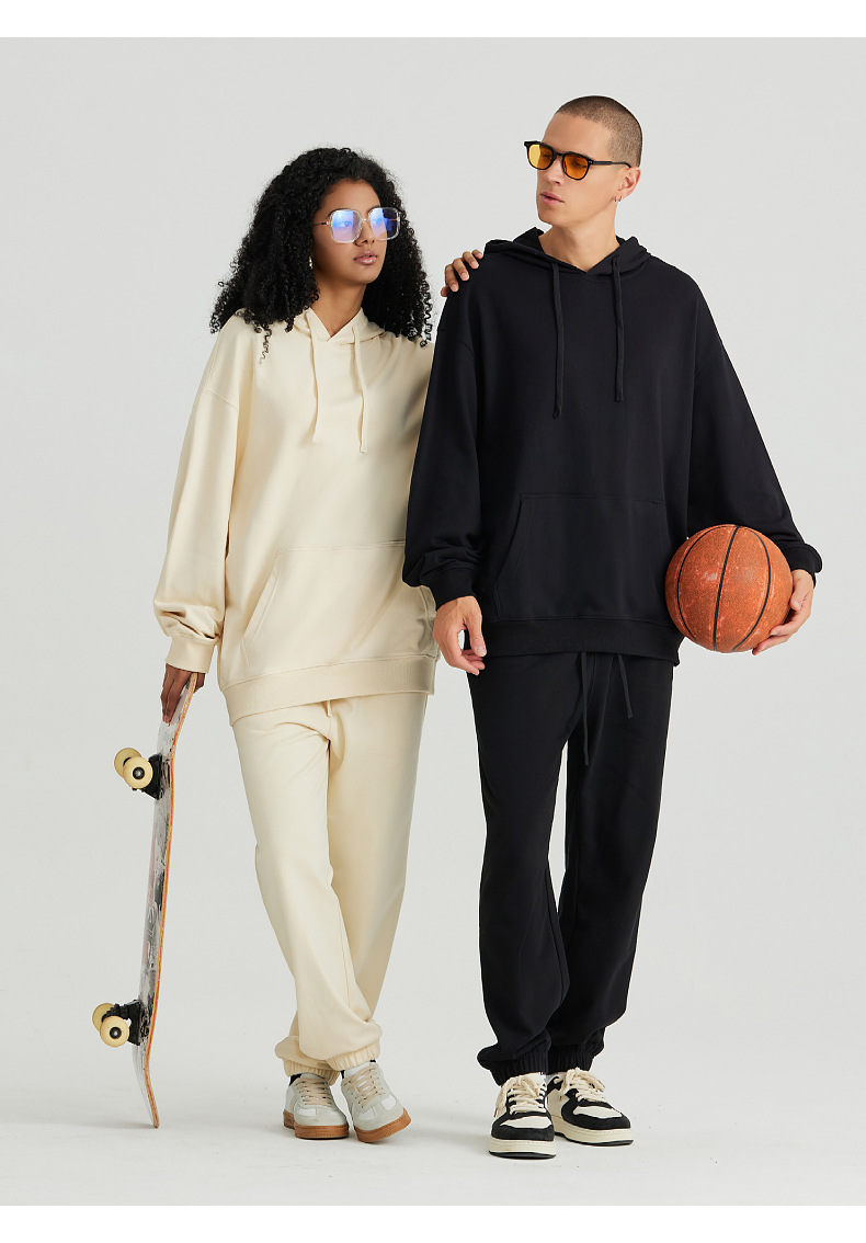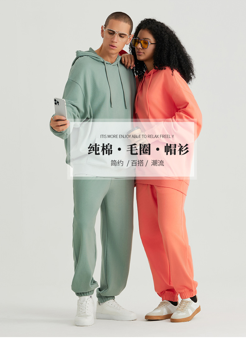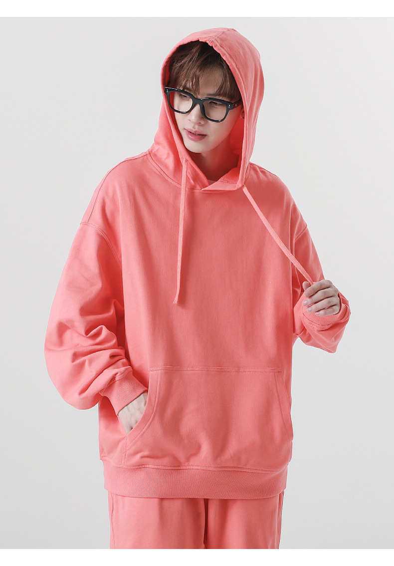 LVLV | 330g 아메리칸 헤비급 크로스 보더 퓨어 코튼 테리 오프 숄더 트렌디 브랜드 풀오버 캐주얼 후드 티셔츠 도파민