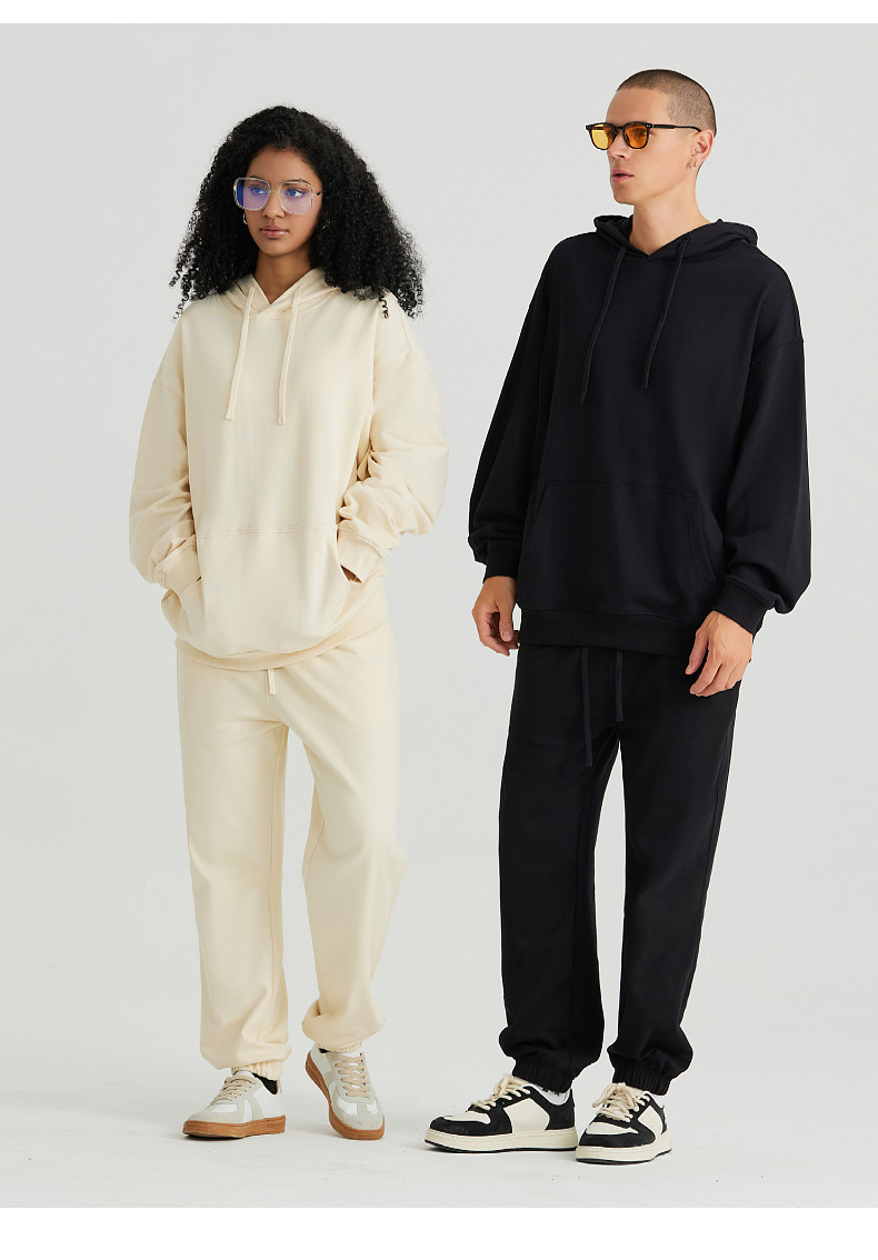 LVLV | 330g 아메리칸 헤비급 크로스 보더 퓨어 코튼 테리 오프 숄더 트렌디 브랜드 풀오버 캐주얼 후드 티셔츠 도파민스토어 가기