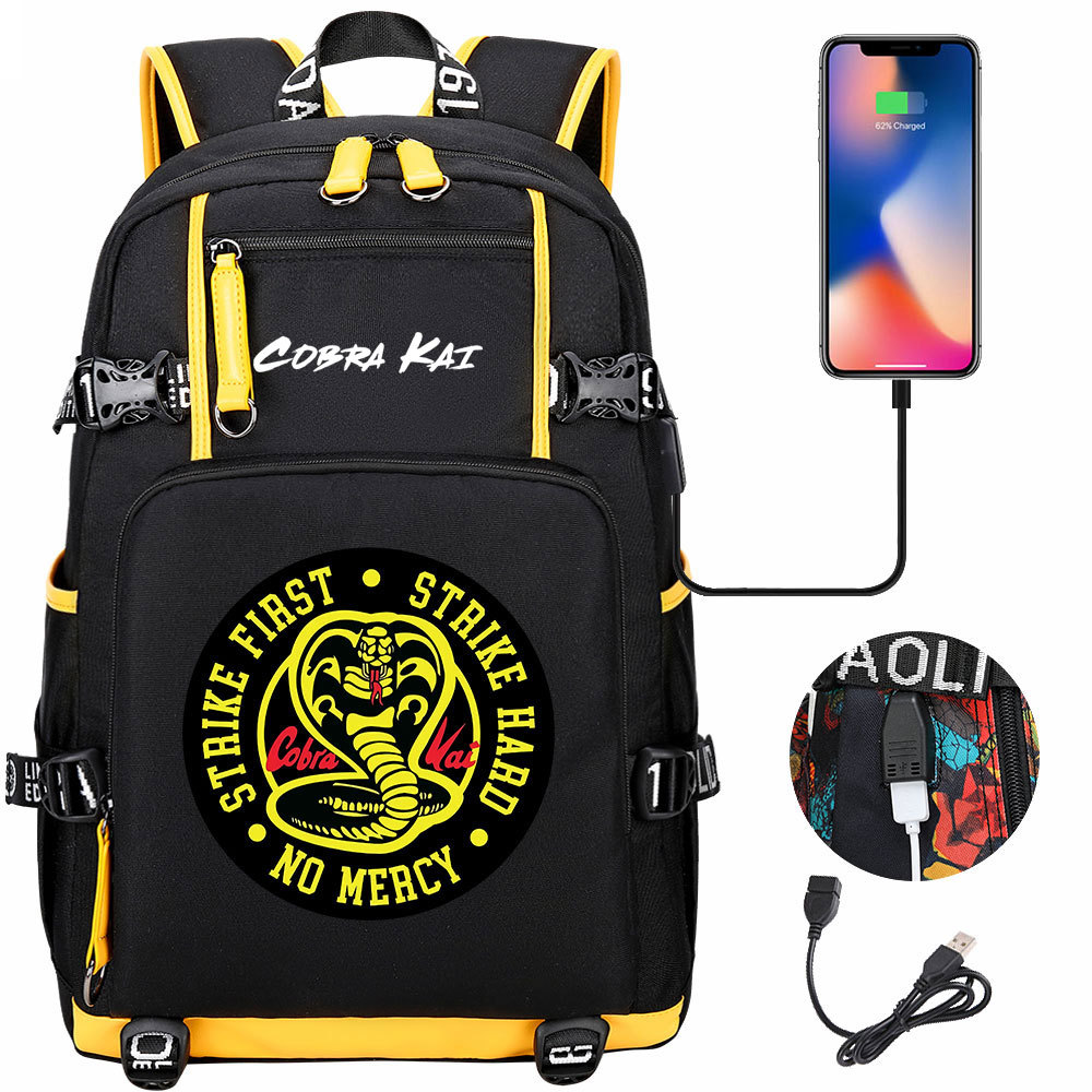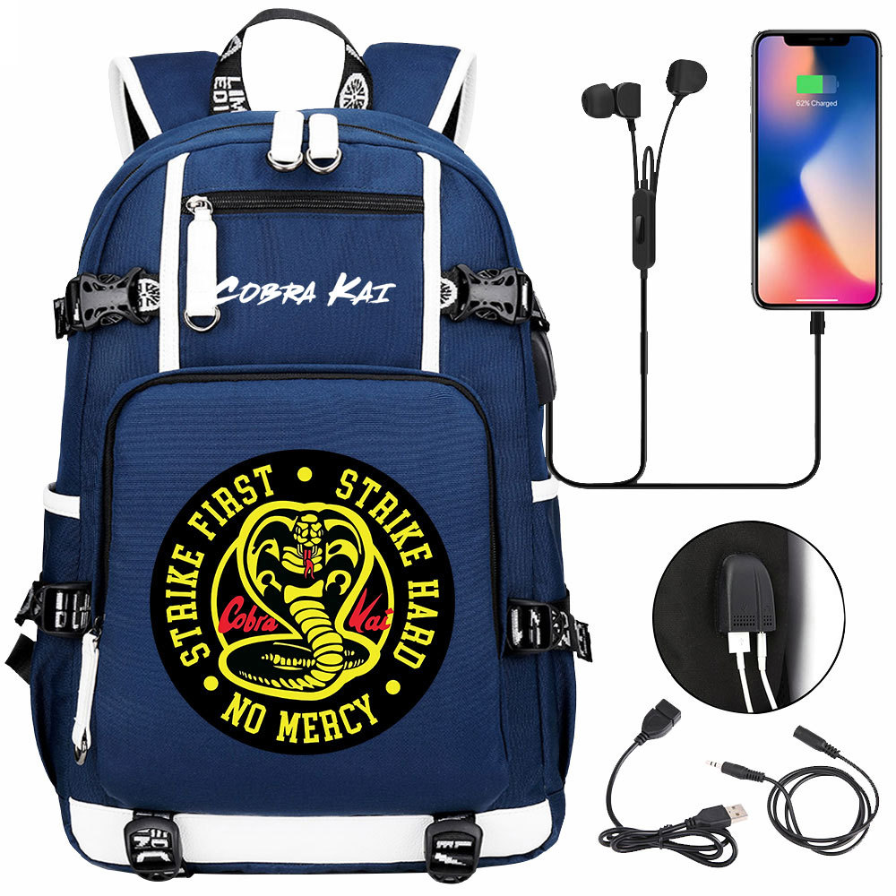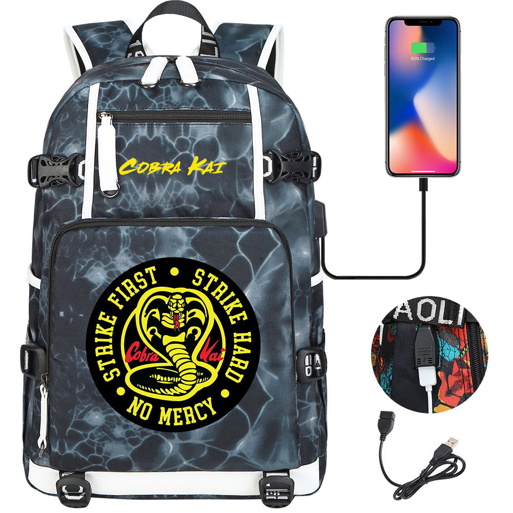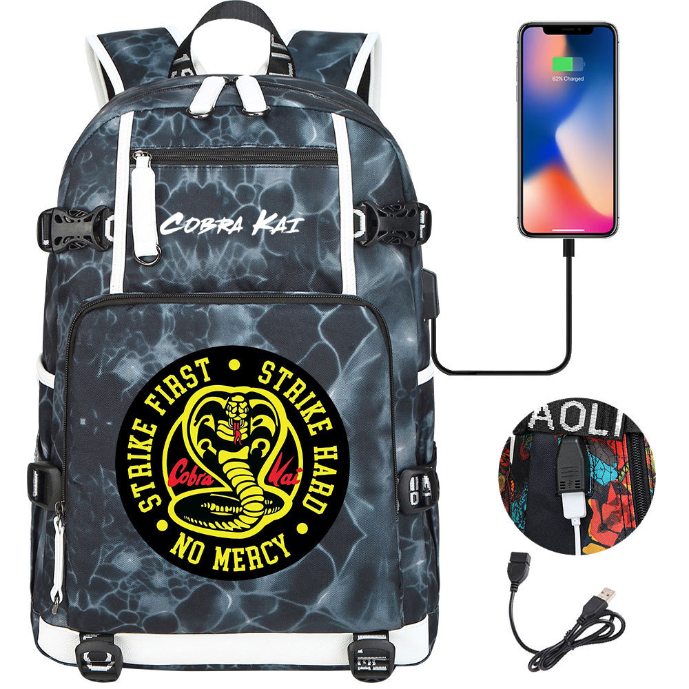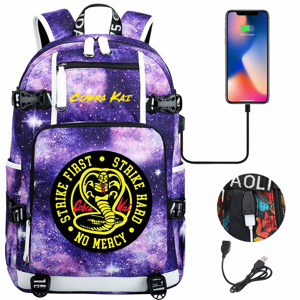 초등 및 중등 학생을위한 새로운 영화 코브라 프린트 USB 십대 책가방 남녀 공용 레저 여행 배낭스토어 가기