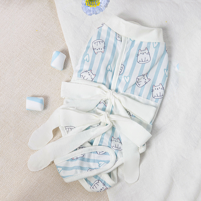 새로운 고양이 살균 의류 전체 인쇄 리본 이유 의류 수술 후 의류 핥기 방지 여름 애완 동물 고양이 개 얇은 고양이 옷