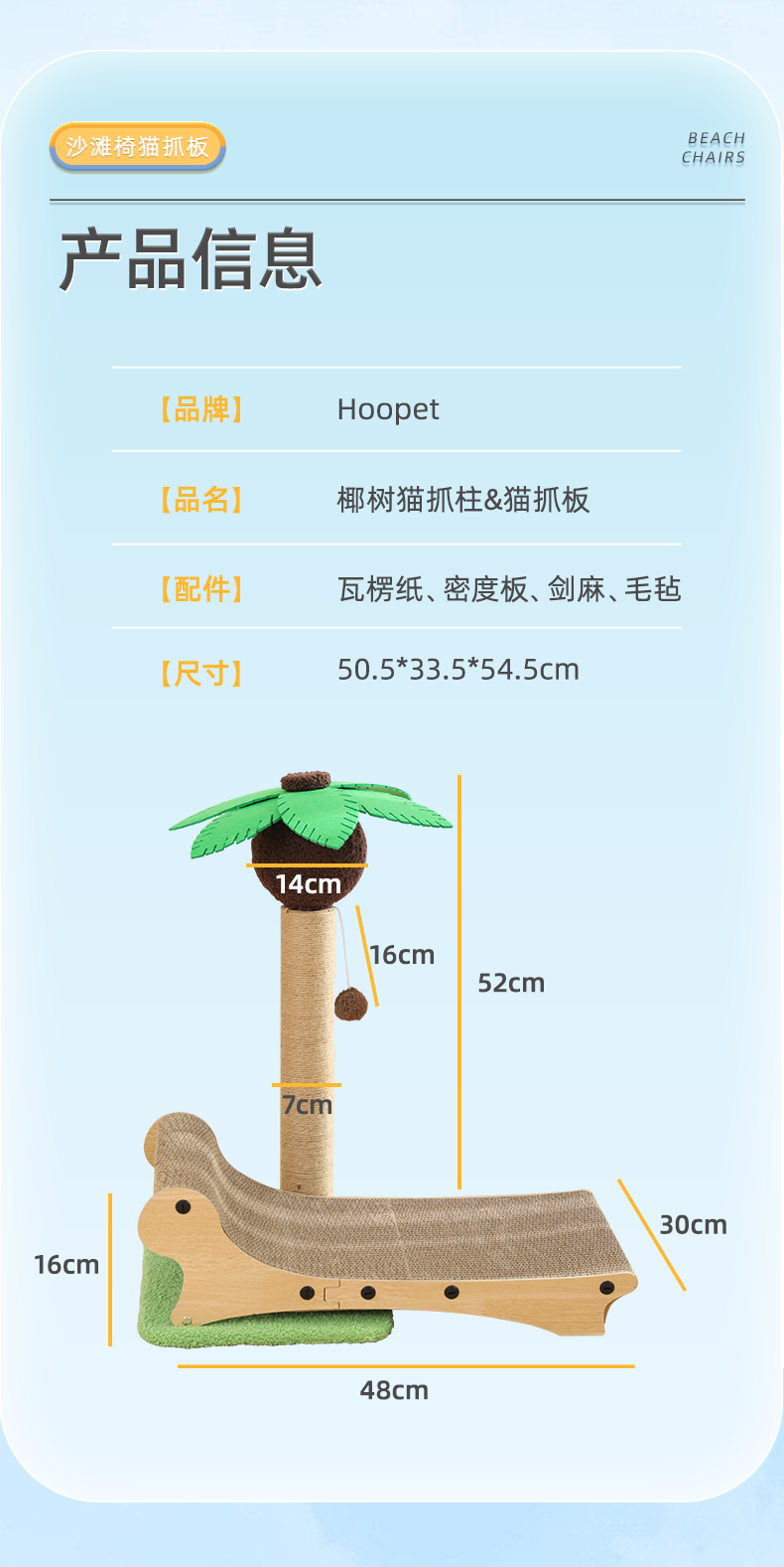 【品名】:HOOPET 沙滩椅猫抓板