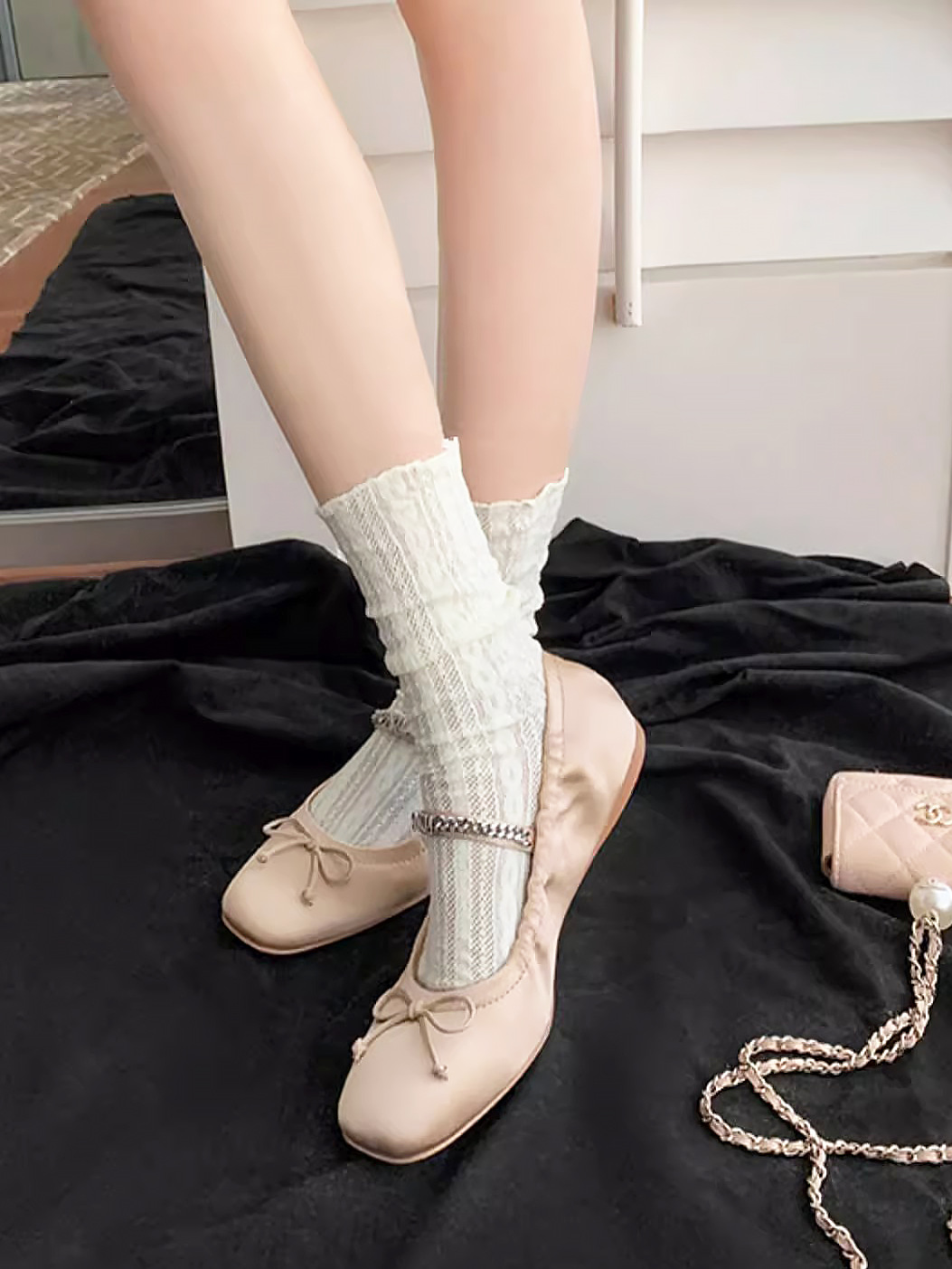 순수한 흰색 트위스트 중간 길이 양말 어린이 여름 발레 스타일 수직 스트립 레이스 메쉬 중공 jk 송아지 스택 양말스토어 가기