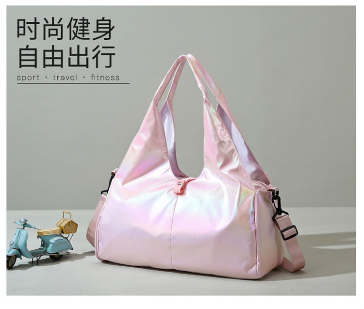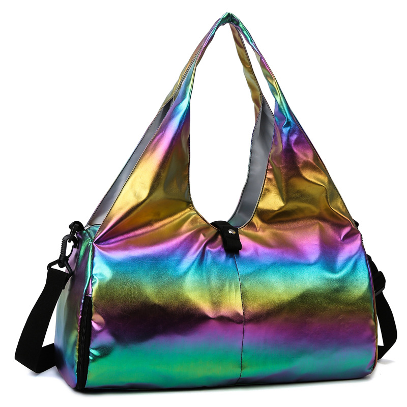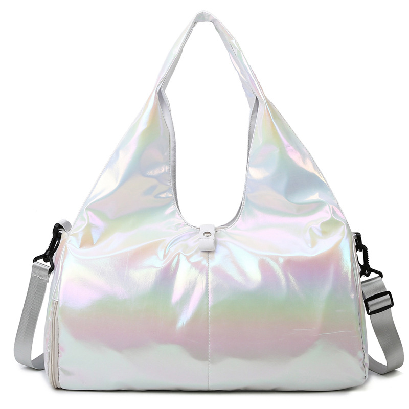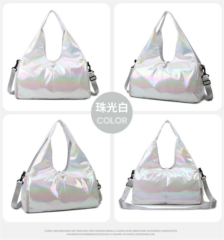 2023 패션 여성 피트니스 가방 밝은 표면 방수 핸드백 대용량 한 어깨 크로스 바디 나일론 수하물 가방 인쇄 로고