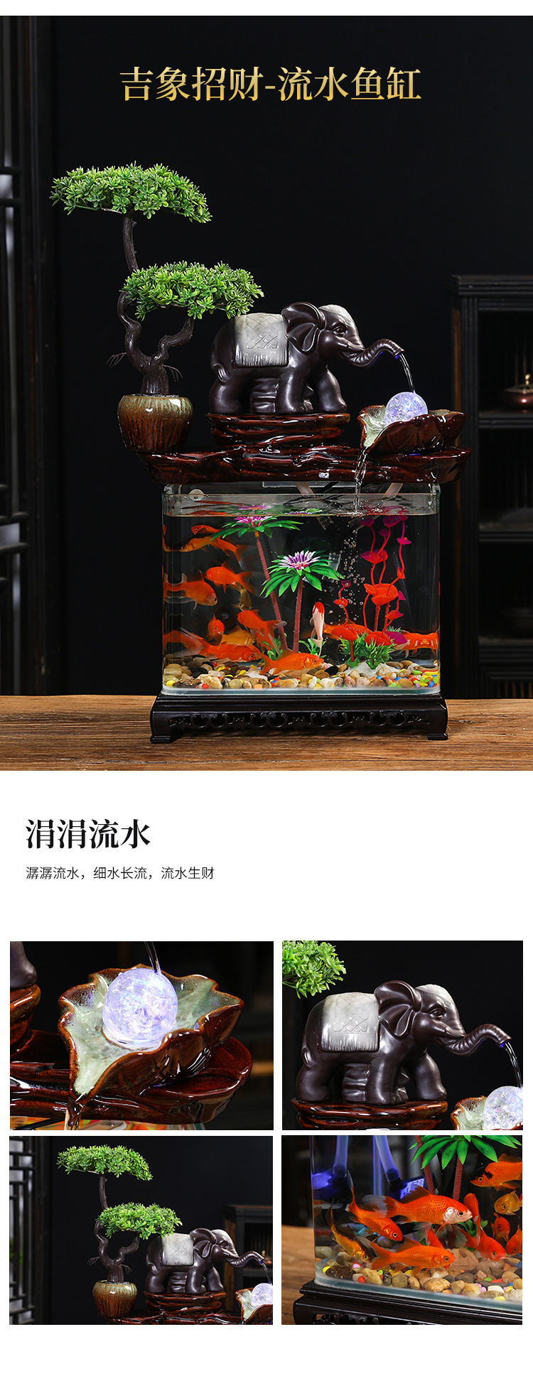 • 길조 코끼리 [모의 노송 나무 소나무 보내기] 물 잔디 컬러 스톤