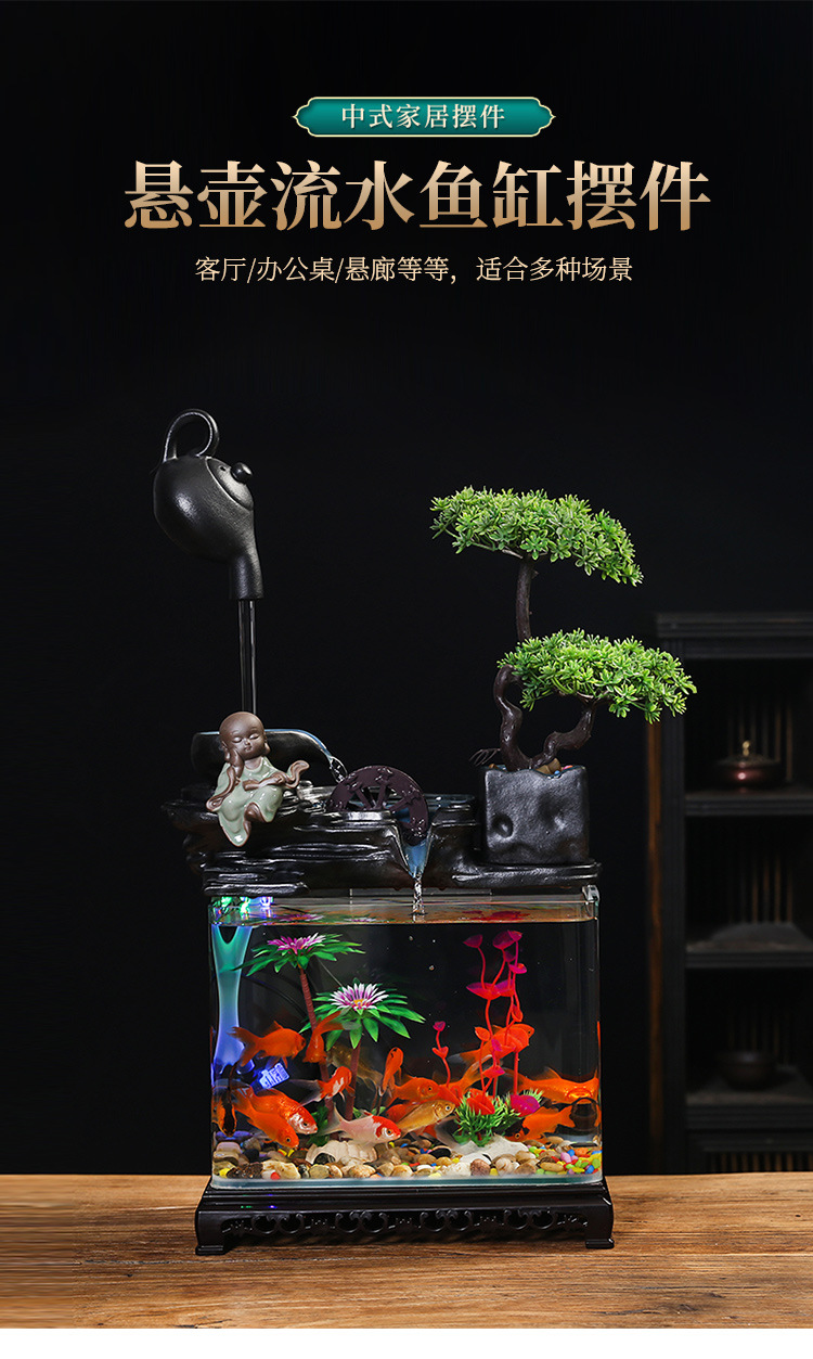 창조적 인 교수형 냄비 풍경 순환 물 장식품 생태 어항 가정용 거실 행운의 모양 유리 물고기 수족관