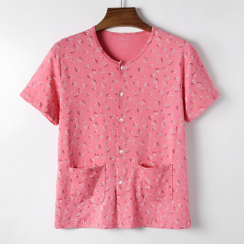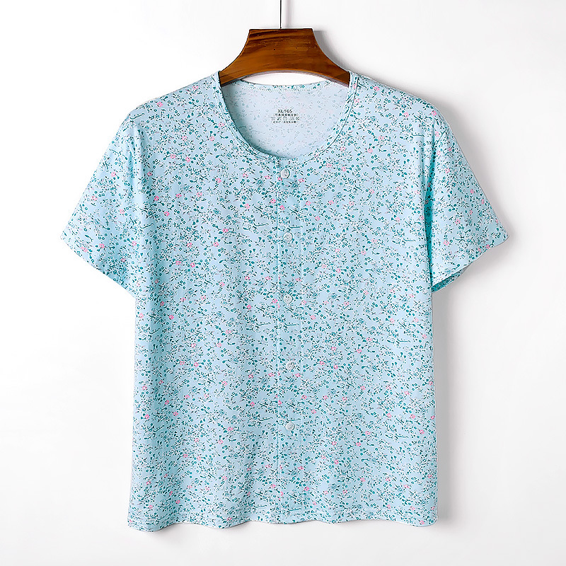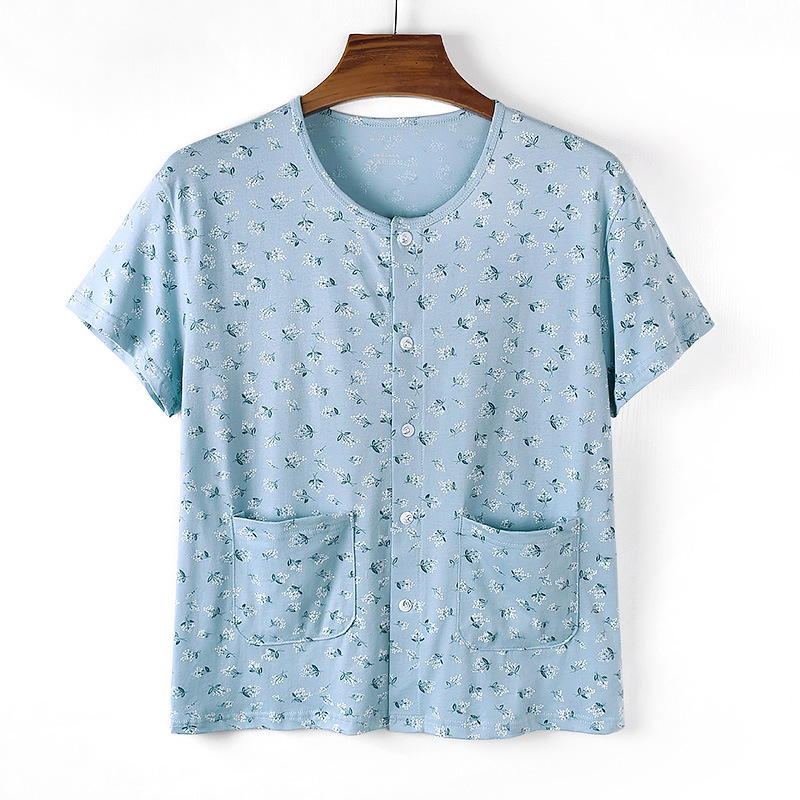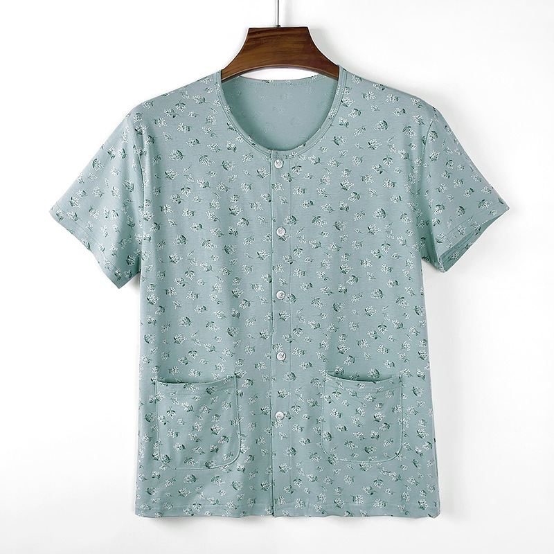 반팔 가디건 여성용 티셔츠 조끼 중년 및 노인 운동복 어머니의 여름 순면 가정 의류 여성의 여름 느슨한 플러스 사이즈스토어 가기