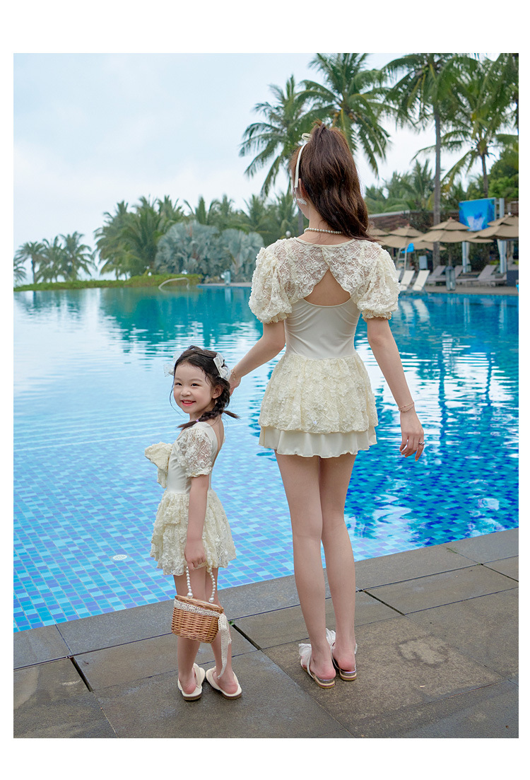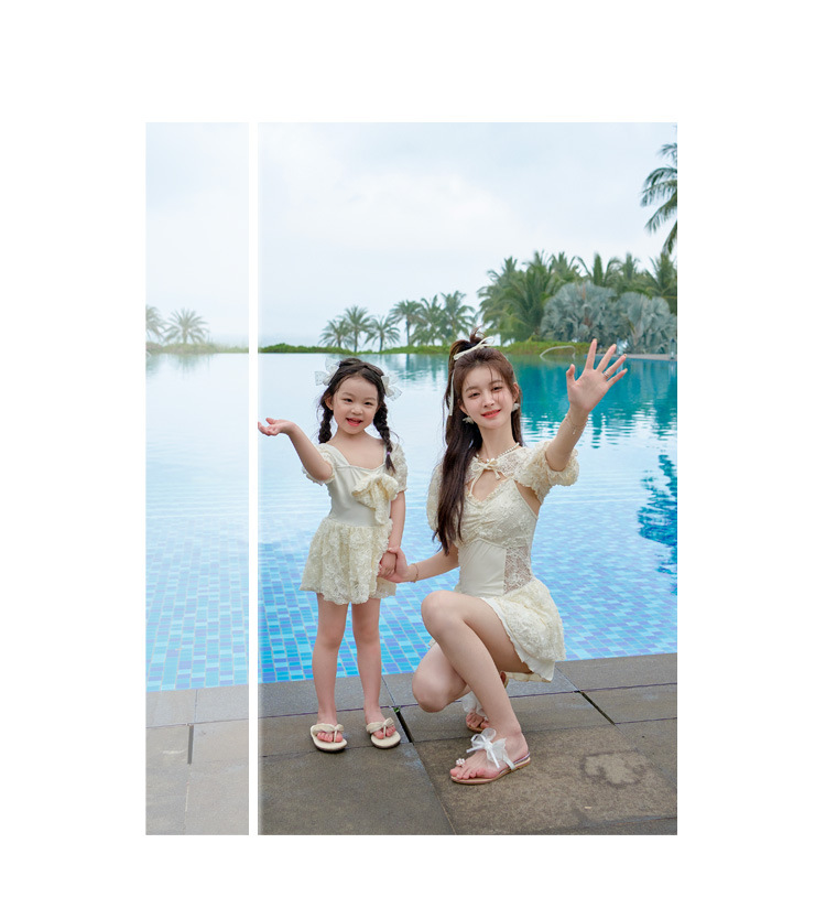 새로운 원피스 스커트 스타일의 부모-자식 수영복 어머니-딸 가족복 슬리밍 배꼽-크고 작은 어린이 귀여운 아기 수영복스토어 가기