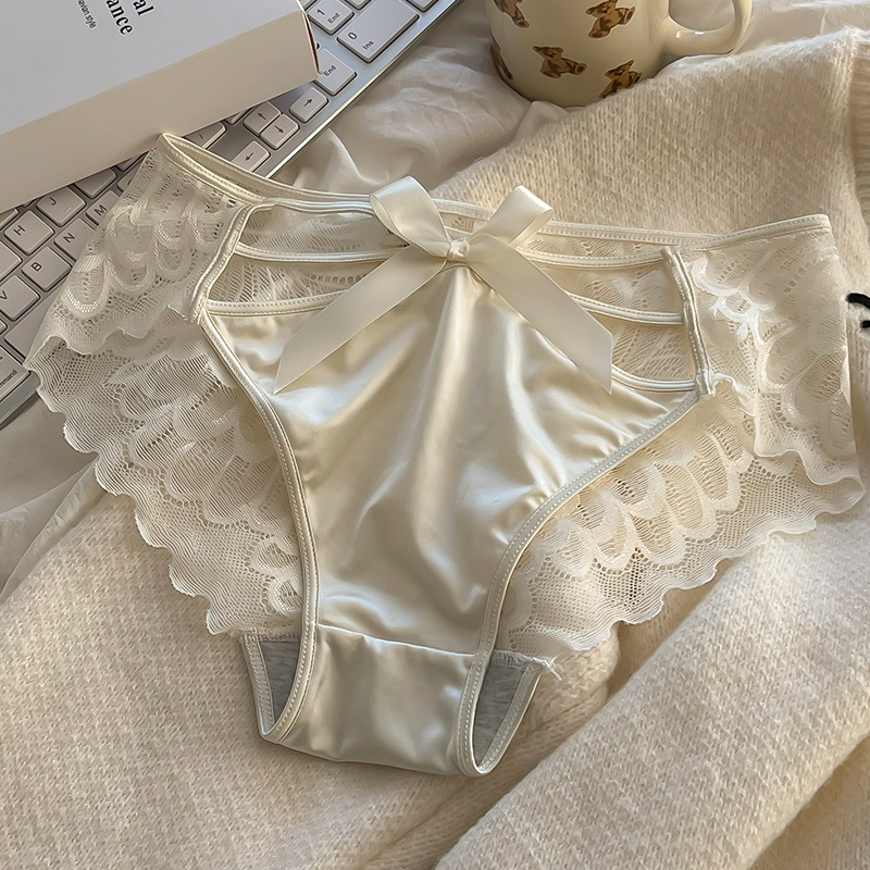 일본식 섹시한 레이스 속옷 여성의 순수한 욕망 보우 크로스 중간 허리 통기성 메쉬 순면 가랑이 팬티