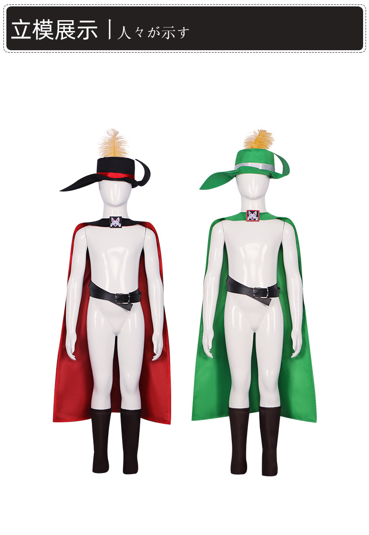 • 빨간색과 검은 색 풀 세트 (케이프 + 벨트 + 모자 + 신발 커버)