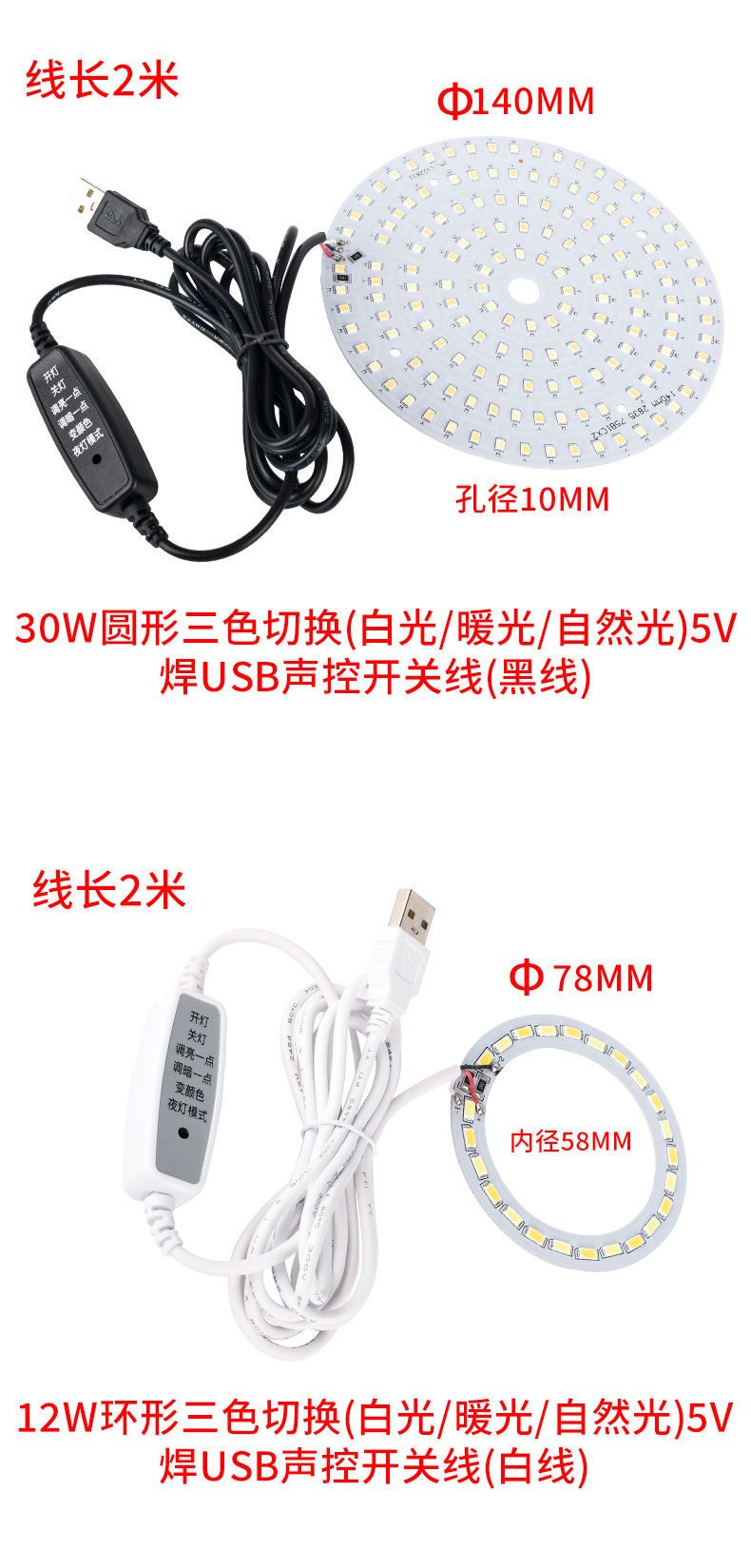 LED 지능형 음성 제어 램프 USB 디밍 색상 5W6W10W12W14W30W 는 순종 램프 라인 길이 2m