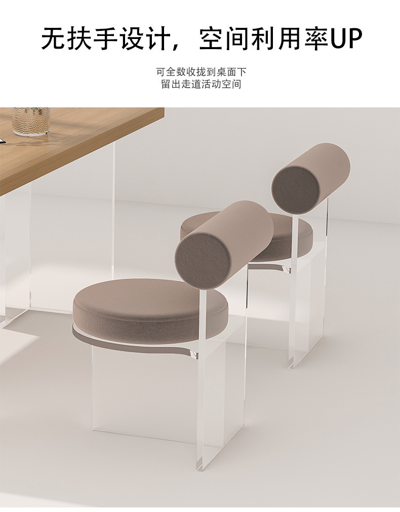 아크릴 식당 의자 서스펜션 테이블 가정용 인터넷 연예인 디자이너 메이크업 의자 등받이 두꺼운 빛 럭셔리 투명 크리스탈 의자