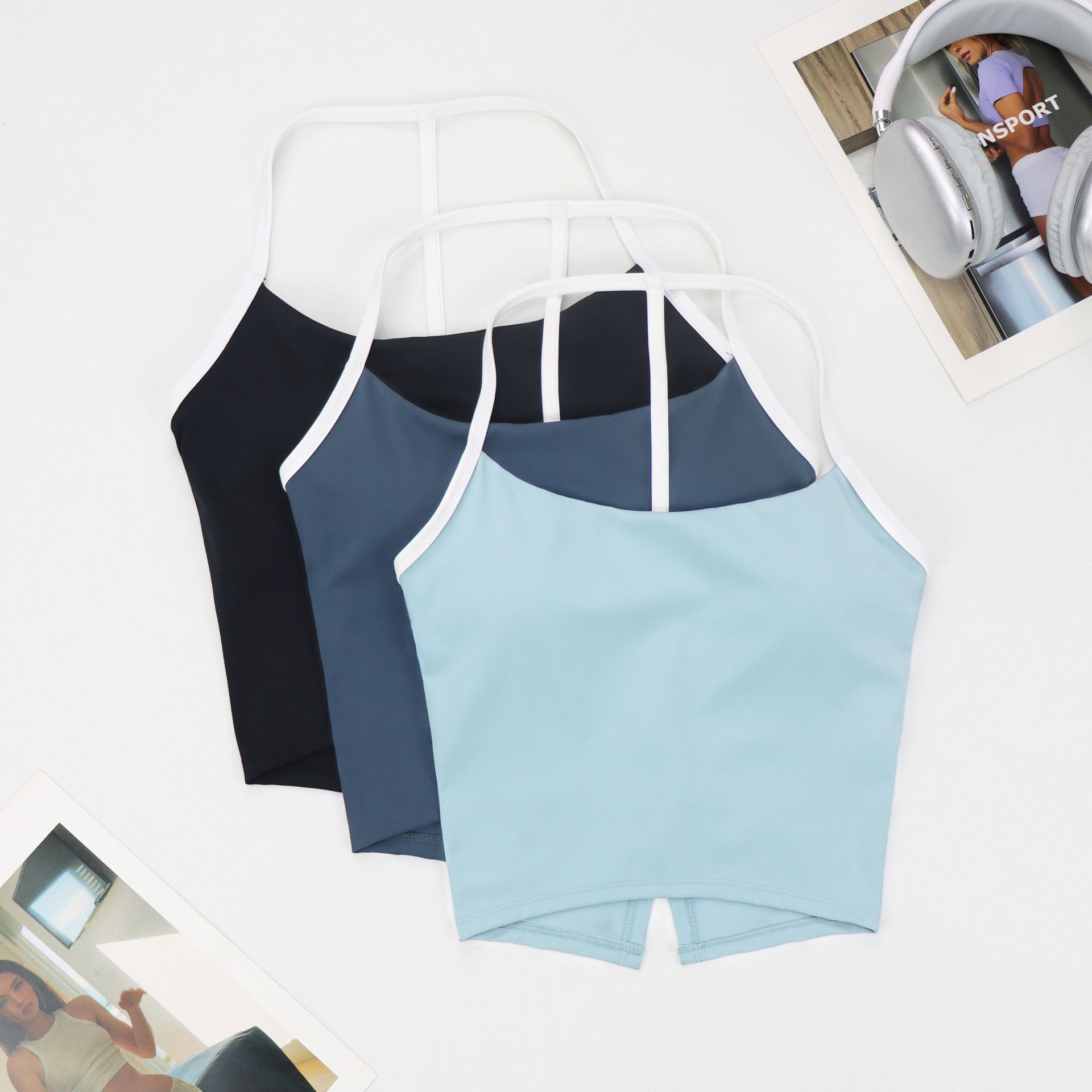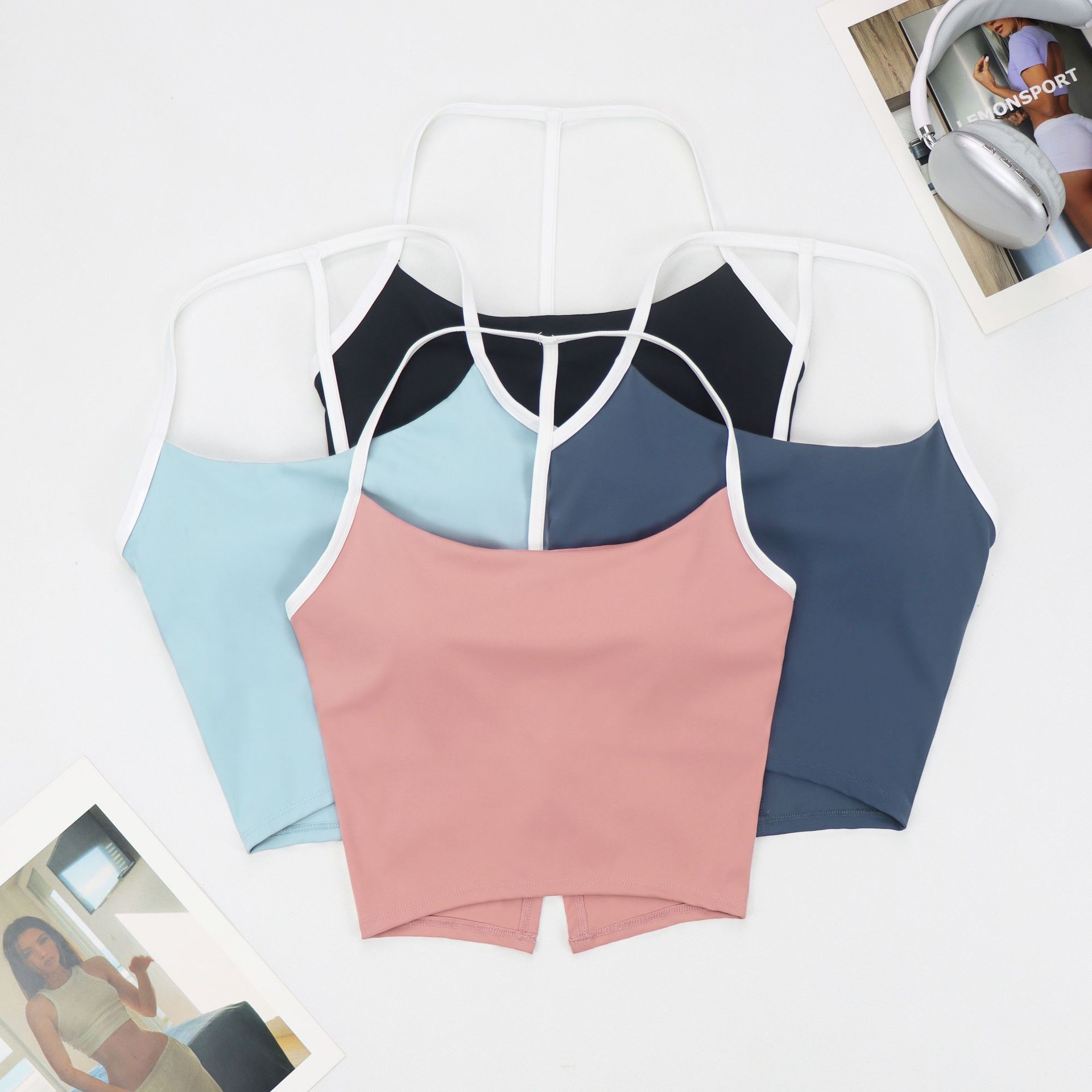 Lulu Dovetail 아름다운 백 컬러 매칭 스포츠 속옷 여성용 교수형 목 요가 가슴 패드가있는 아름다운 등 통기성 속건 피트니스 조끼