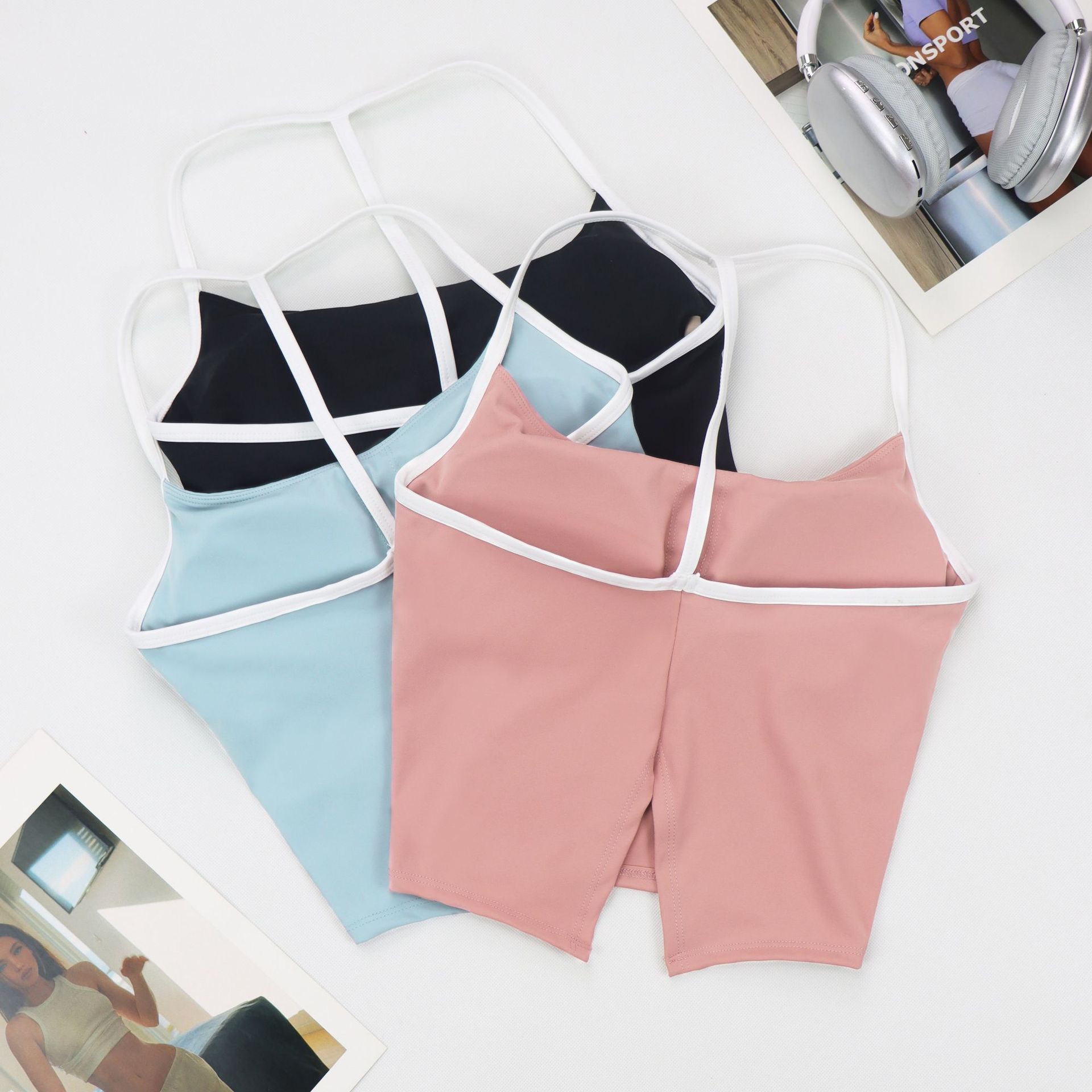 Lulu Dovetail 아름다운 백 컬러 매칭 스포츠 속옷 여성용 교수형 목 요가 가슴 패드가있는 아름다운 등 통기성 속건 피트니스 조끼스토어 가기