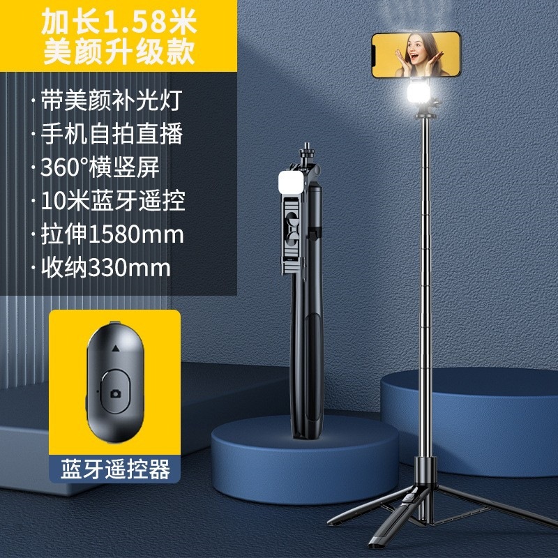 새로운 휴대 전화 셀카 스틱 블루투스 연장 착륙 1.6m 라이브 뷰티 가벼운 사진 강화 흔들림 방지 삼각대