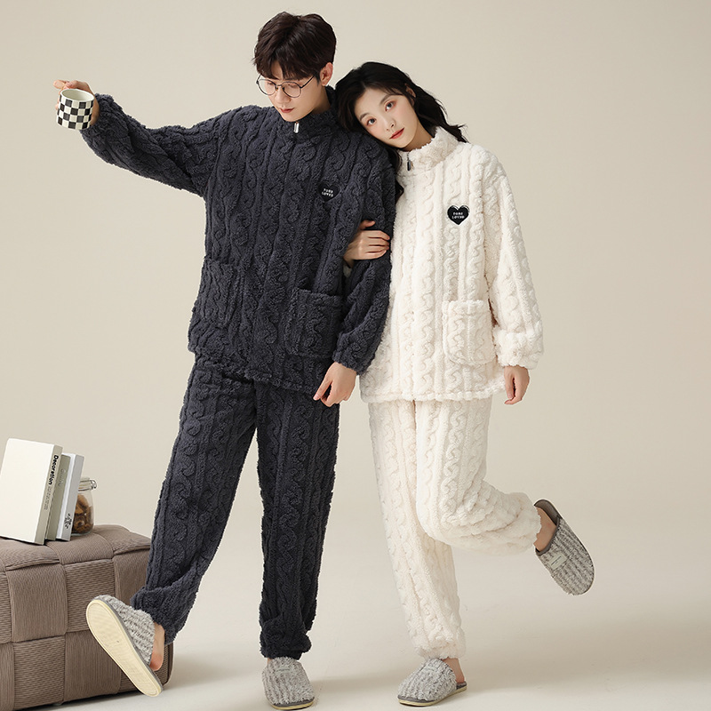 가을과 겨울 따뜻한 벨벳 여성 잠옷 투피스 세트 플러스 사이즈 느슨한 캐주얼 커플 잠옷 밖에서 착용 할 수 있습니다스토어 가기