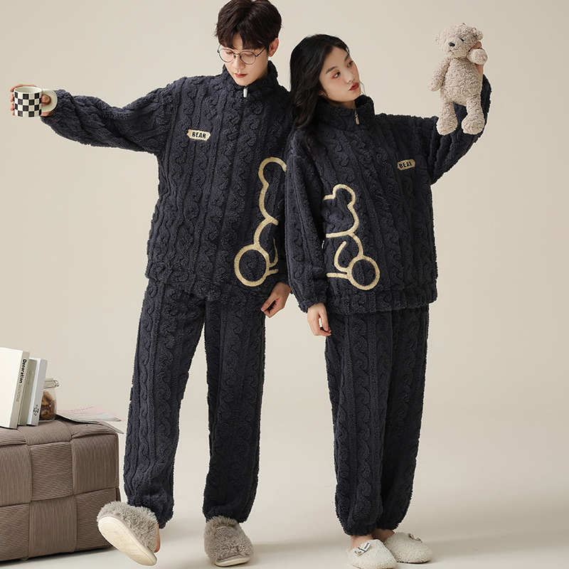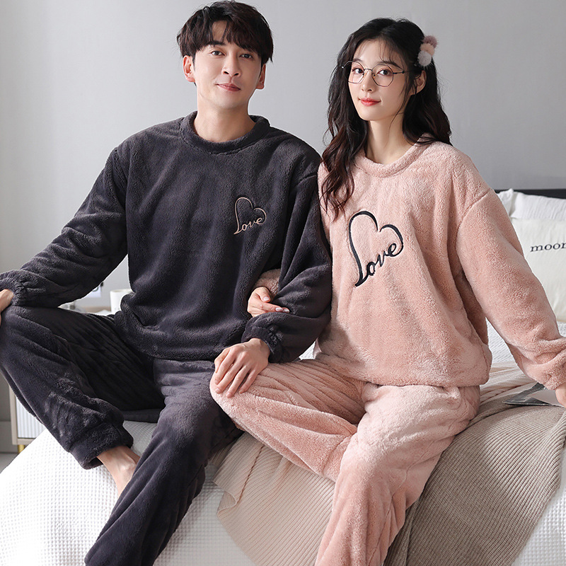 가을과 겨울 따뜻한 벨벳 여성 잠옷 투피스 세트 플러스 사이즈 느슨한 캐주얼 커플 잠옷 밖에서 착용 할 수 있습니다
