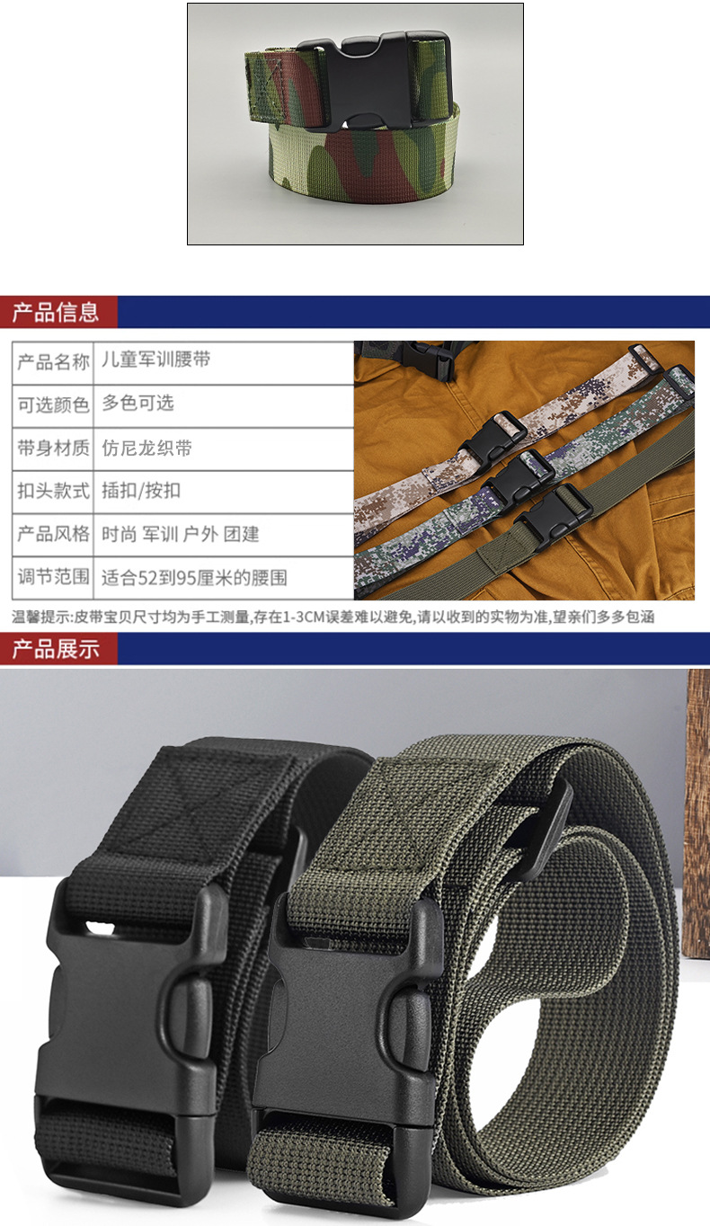 어린이 위장 군사 훈련 벨트 여아 중학생 벨트 남아 중학교 캔버스 버클 벨트