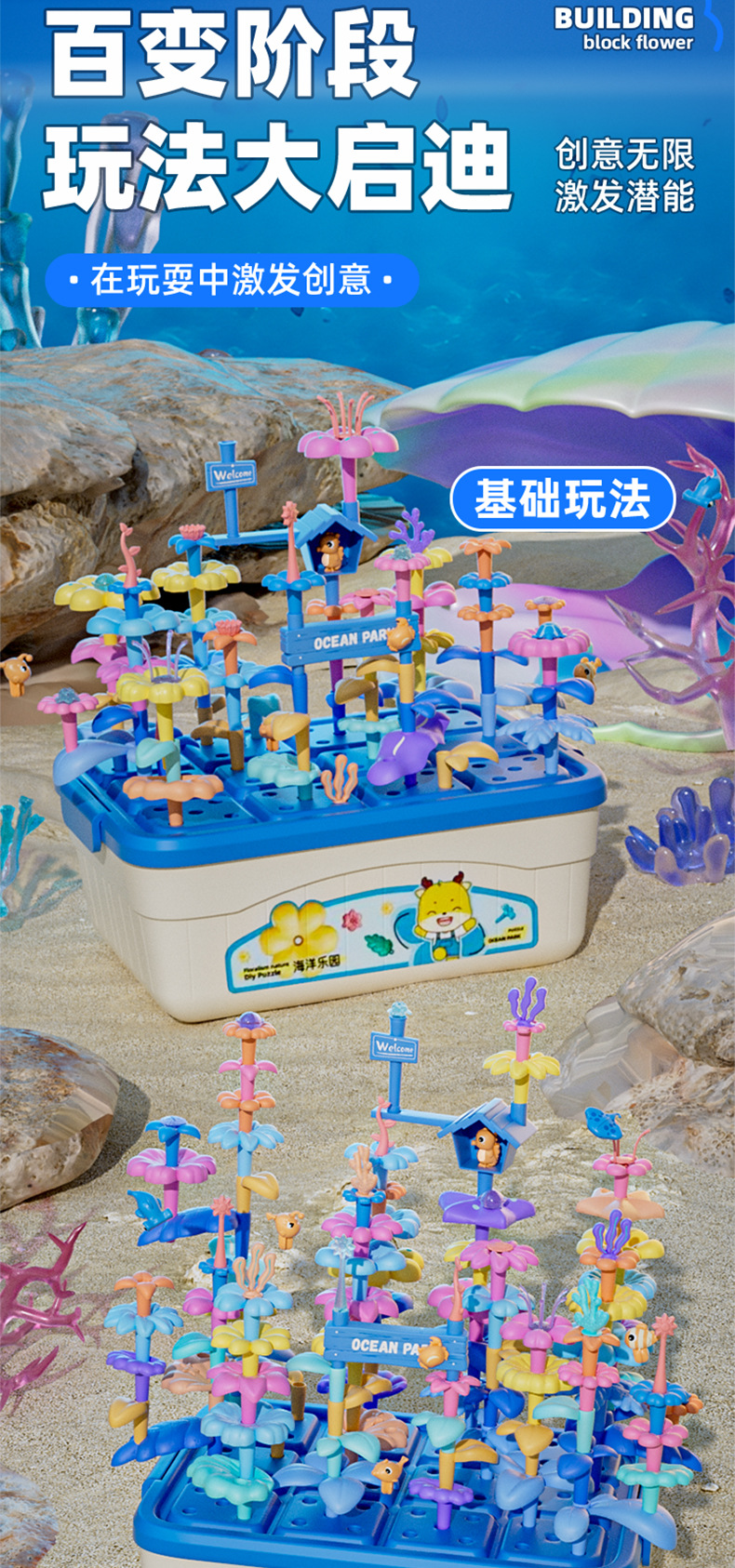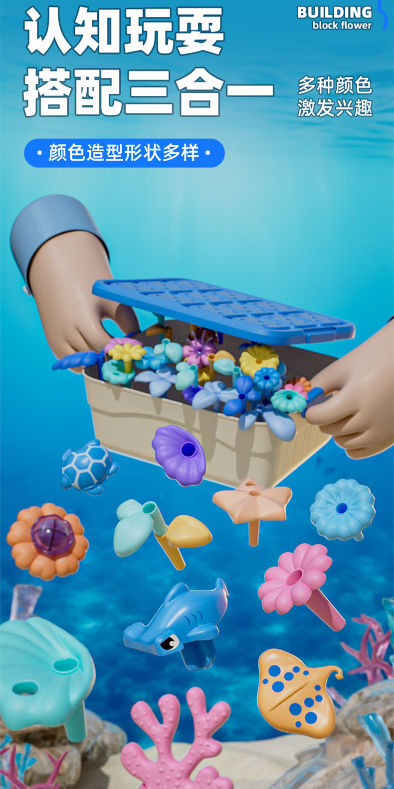 • 857-2B 오션 월드 빌딩 블록 꽃 전자 상거래 상자 123개 852g 볼륨 1.75