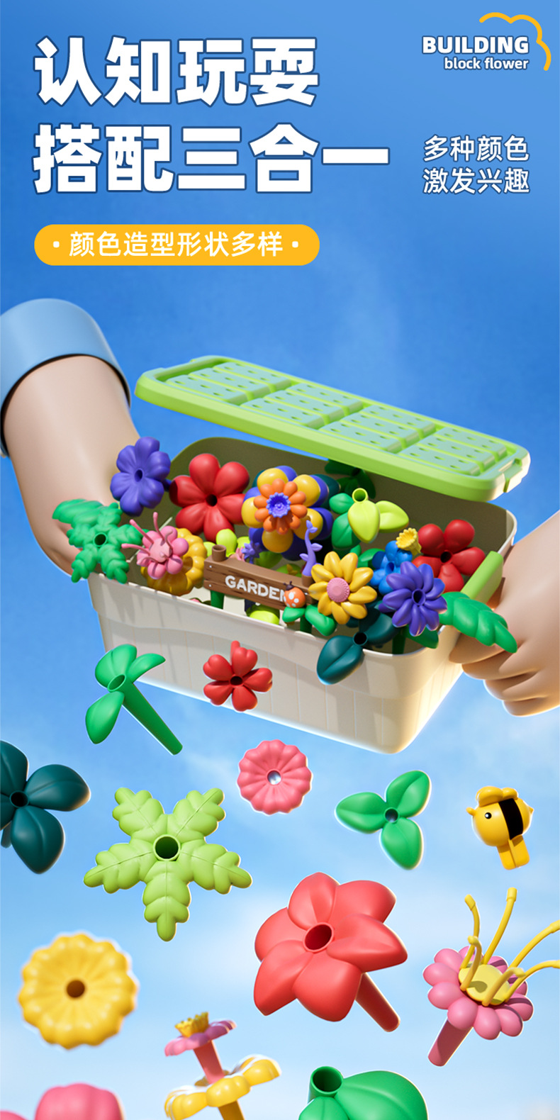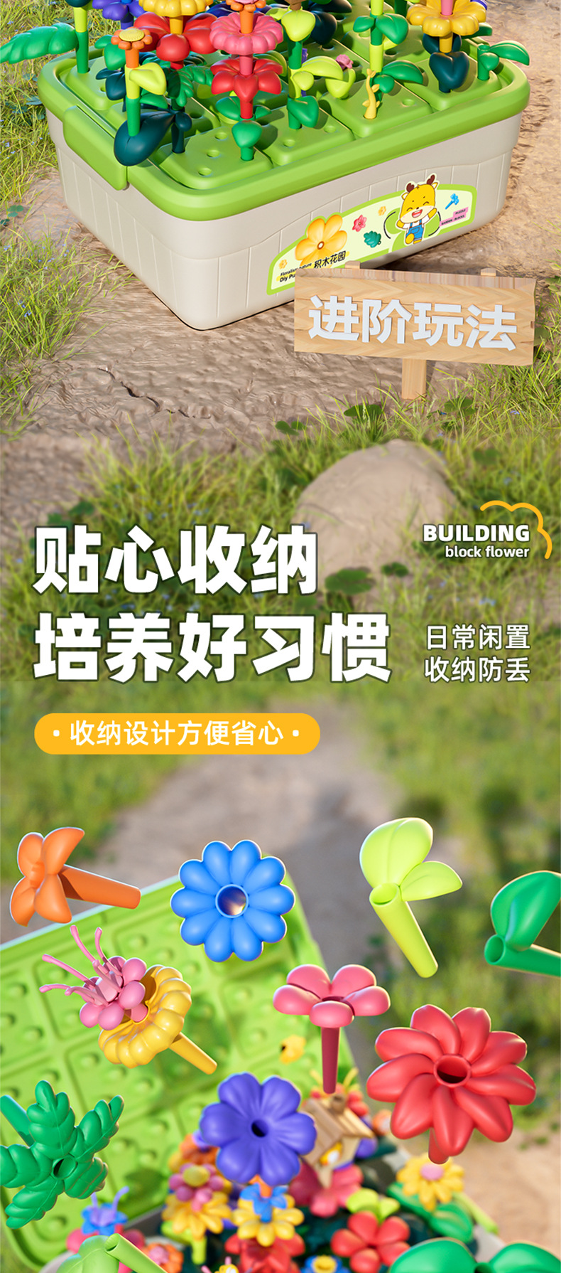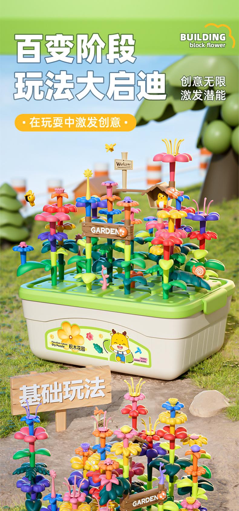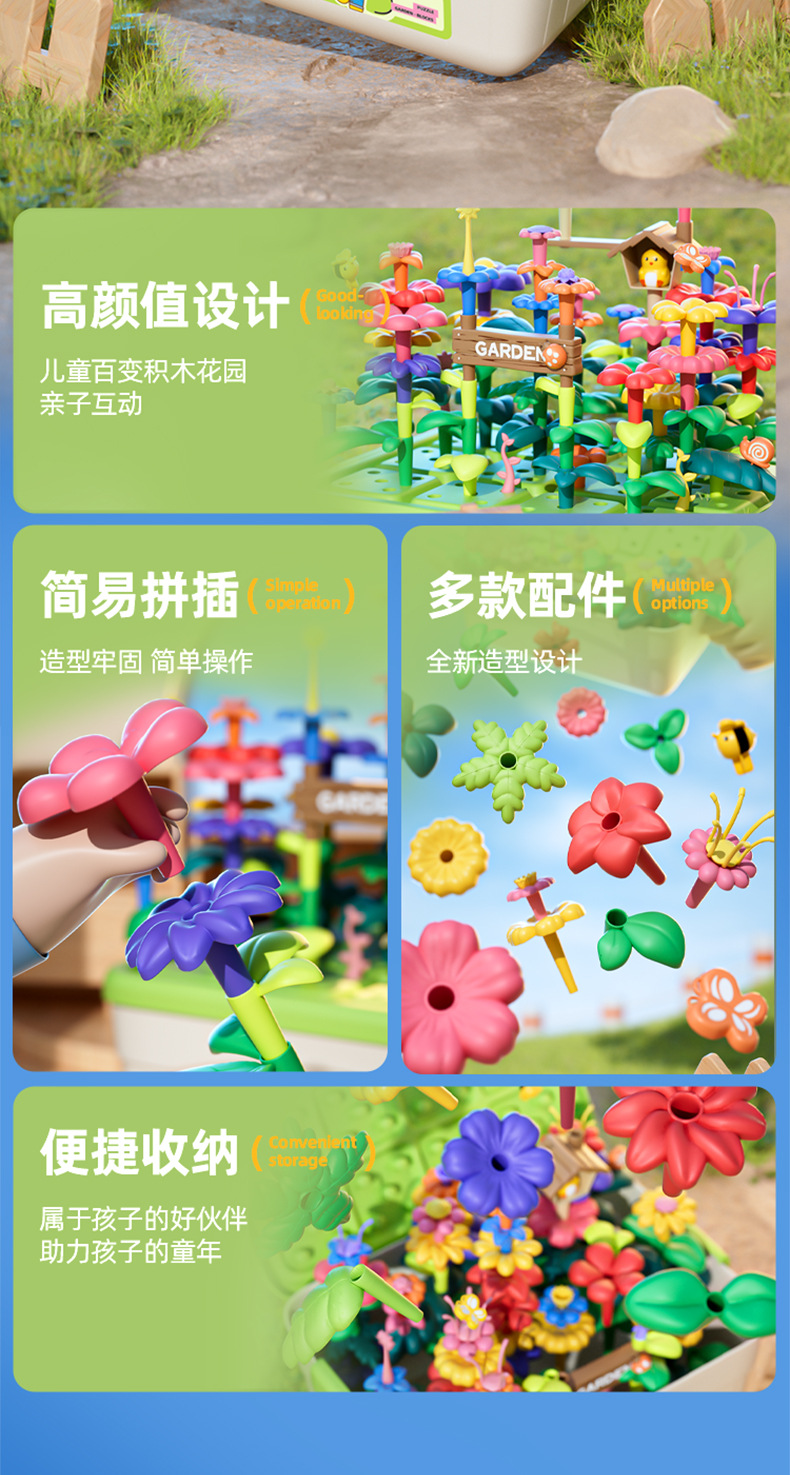 소스 공장 아이들의 창조적 인 조립 빌딩 블록 꽃 장난감 교육 변수 빌딩 블록 정원 조립 장난감스토어 가기