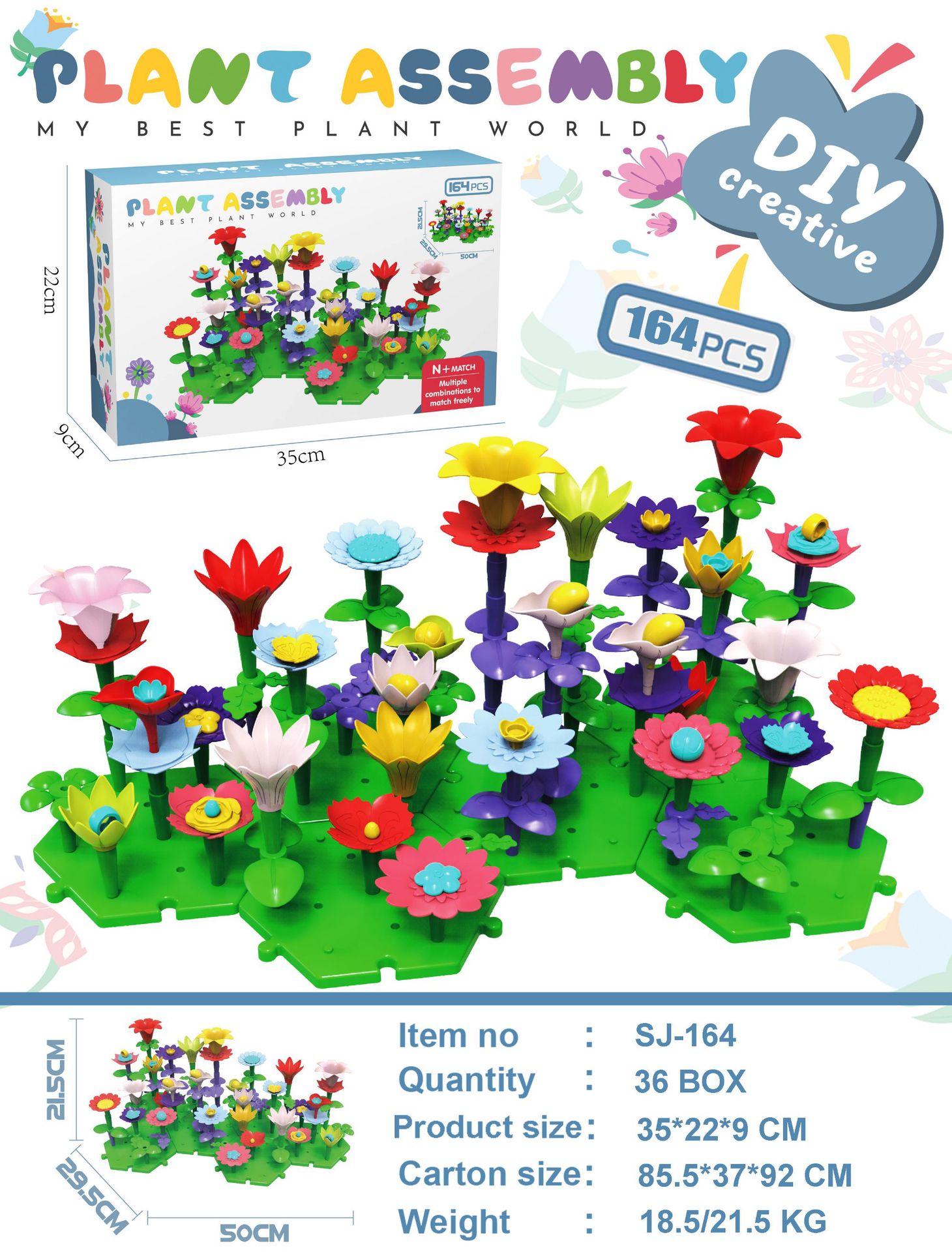 소스 공장 아이들의 창조적 인 조립 빌딩 블록 꽃 장난감 교육 변수 빌딩 블록 정원 조립 장난감