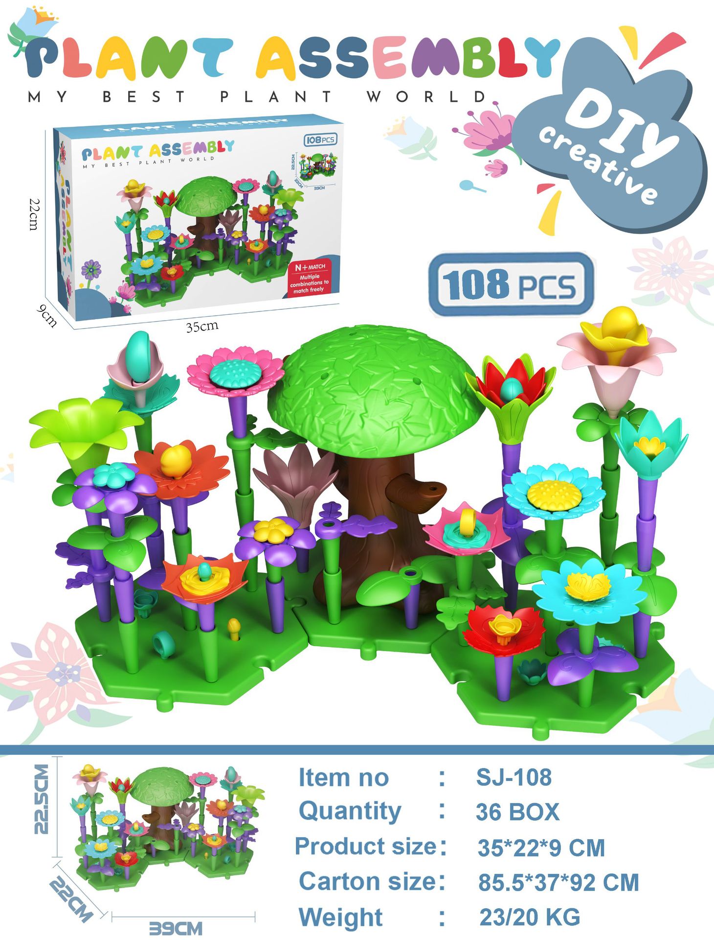 • 108pcs 버섯 심기 빌딩 블록 꽃 상자 530g 볼륨 1.02