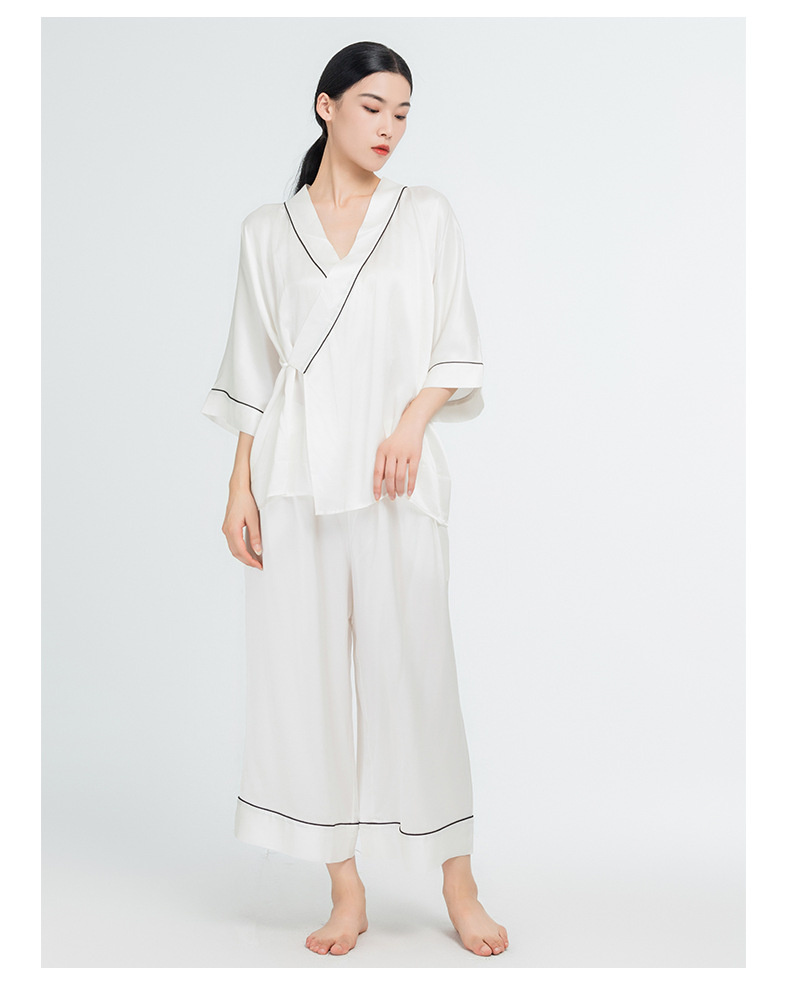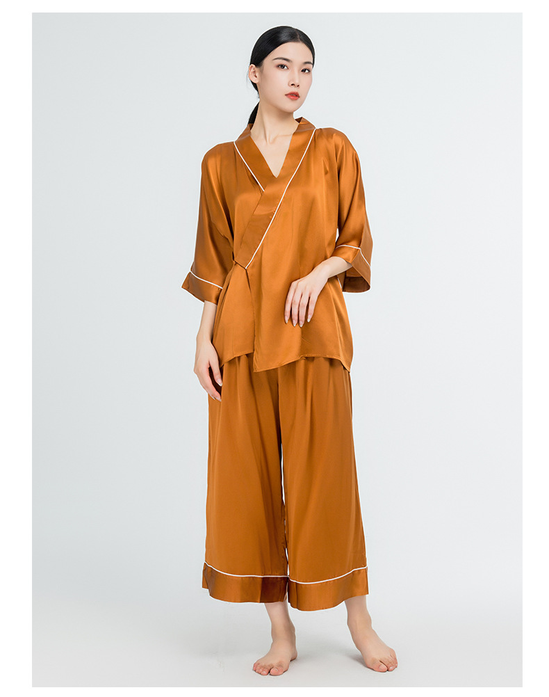 Cocoonie 실크 잠옷 100% 뽕나무 실크 중국 스타일 더블 브레스트 홈웨어 여성 캐주얼 하이 엔드 슈트