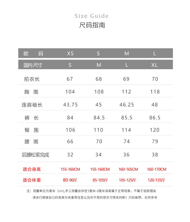 • 유럽 코드 XS (높이 155-160 무게 40.00 kg-45.00 kg