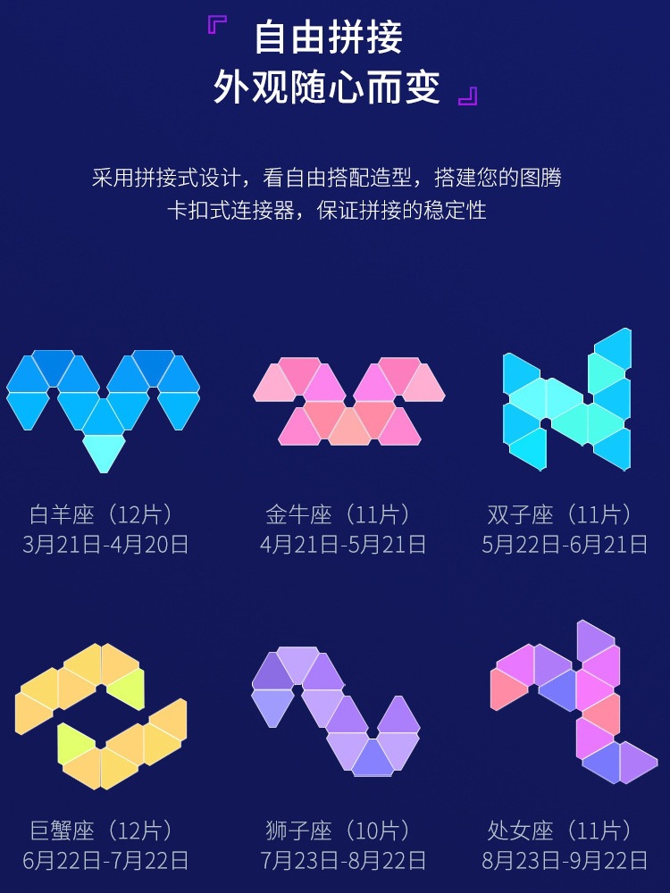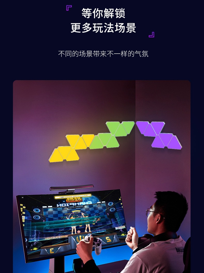 지능형 홀수 라이트 보드 픽업 리듬 음악 양자 램프 삼각형 램프 전기 경쟁 분위기 램프 벽 램프 야간 조명스토어 가기