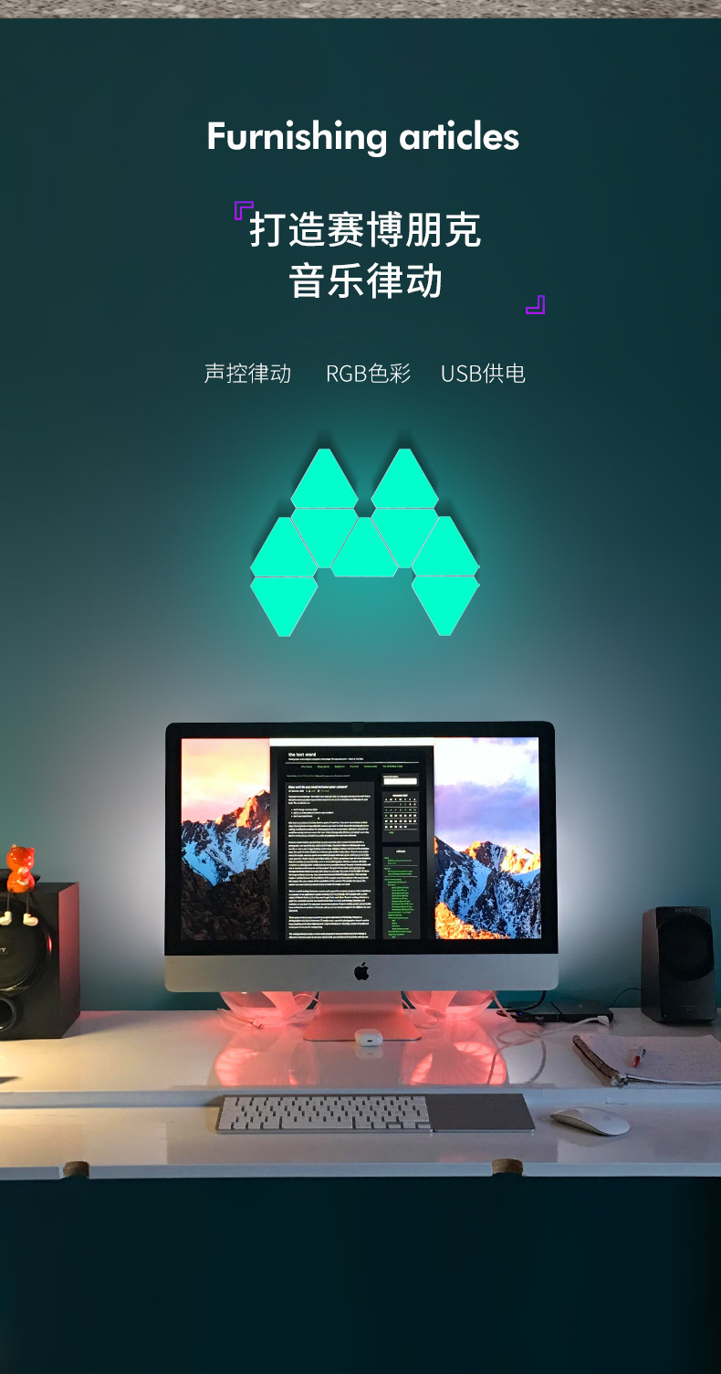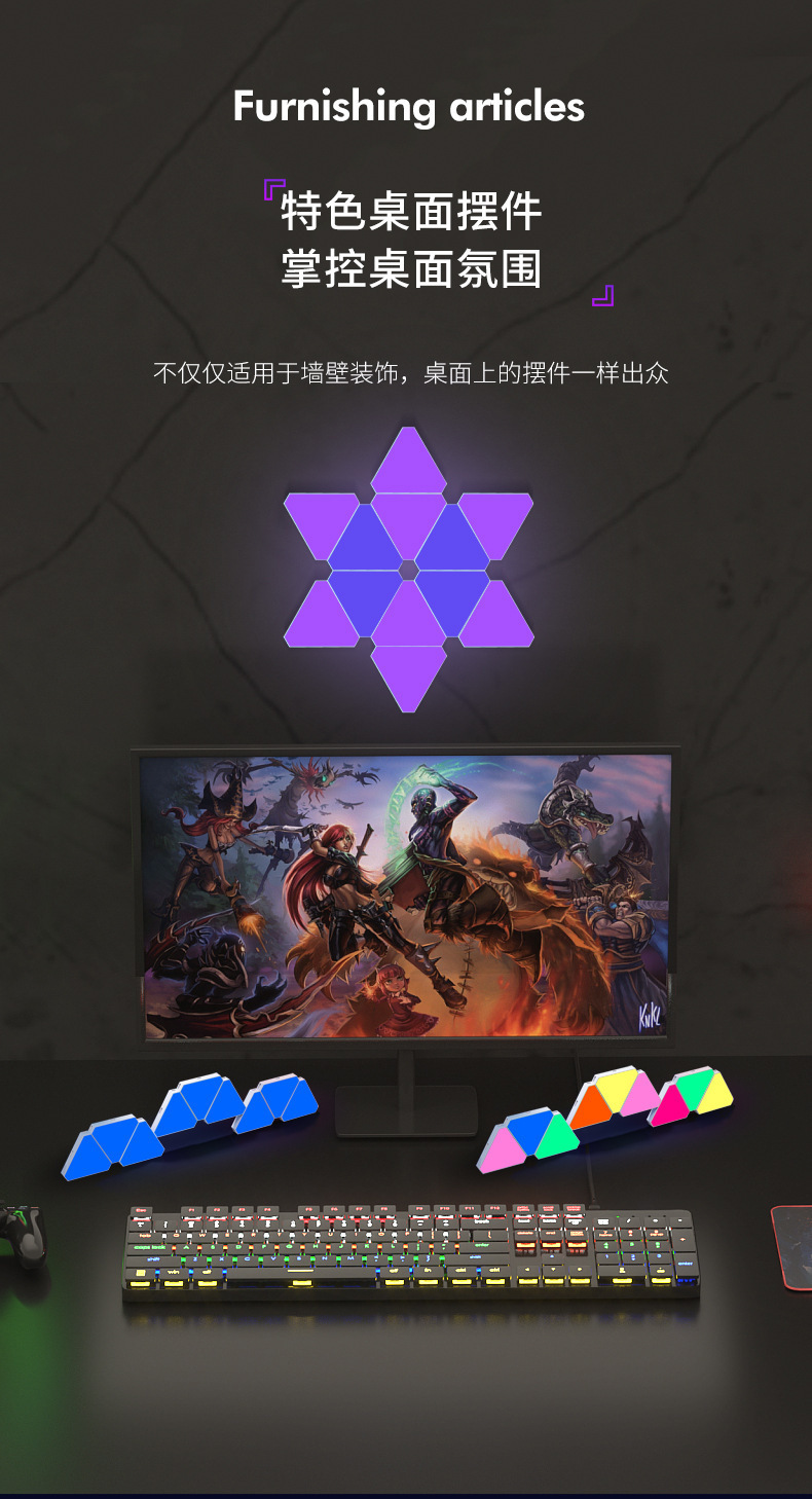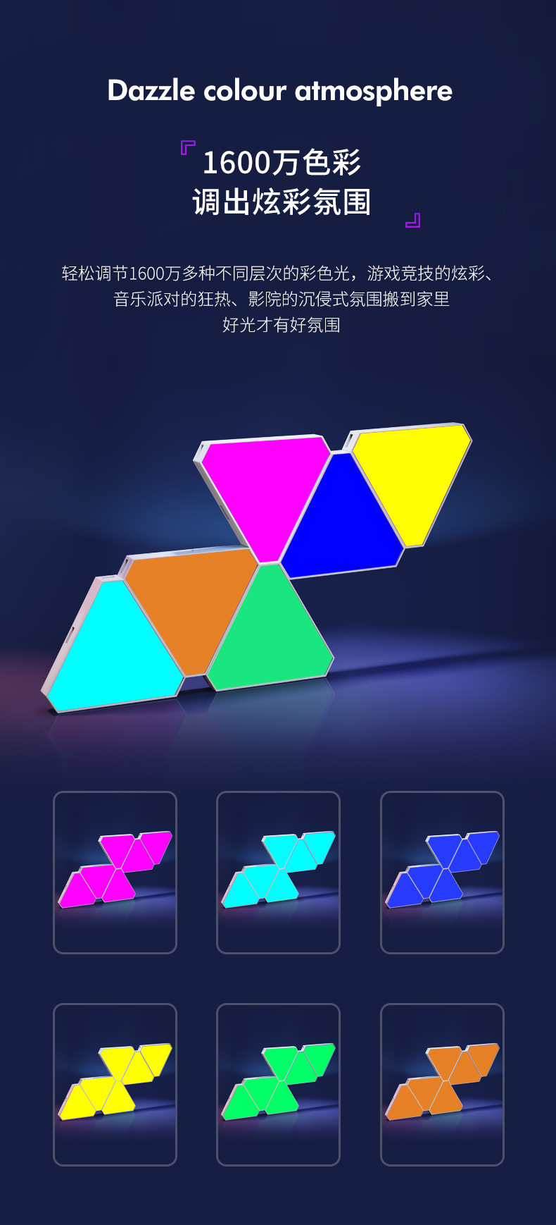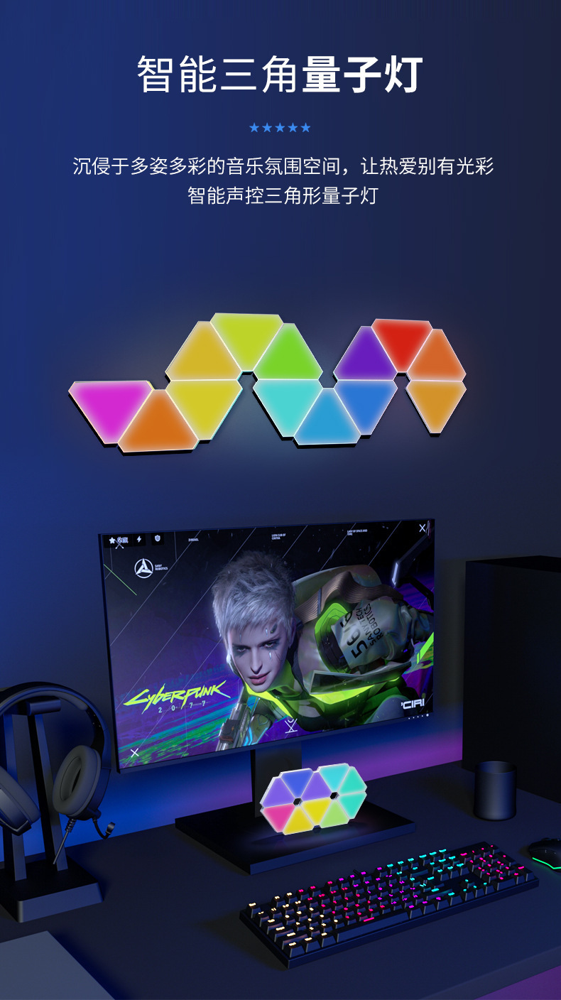 지능형 홀수 라이트 보드 픽업 리듬 음악 양자 램프 삼각형 램프 전기 경쟁 분위기 램프 벽 램프 야간 조명