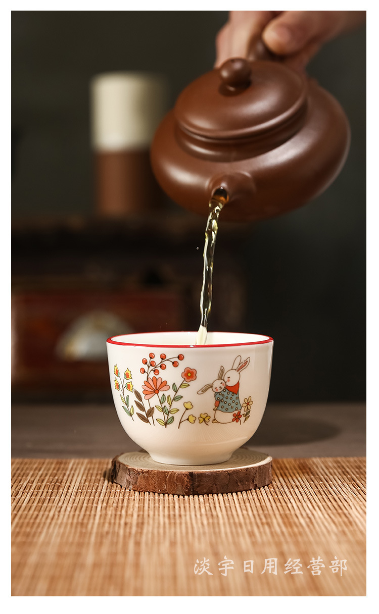 Jiangzhong 컵 세라믹 차 컵 가정용 입 컵 도자기 작은 차 컵 차 컵 중국 스타일 쿵푸 차 세트 마스터 컵 물 컵