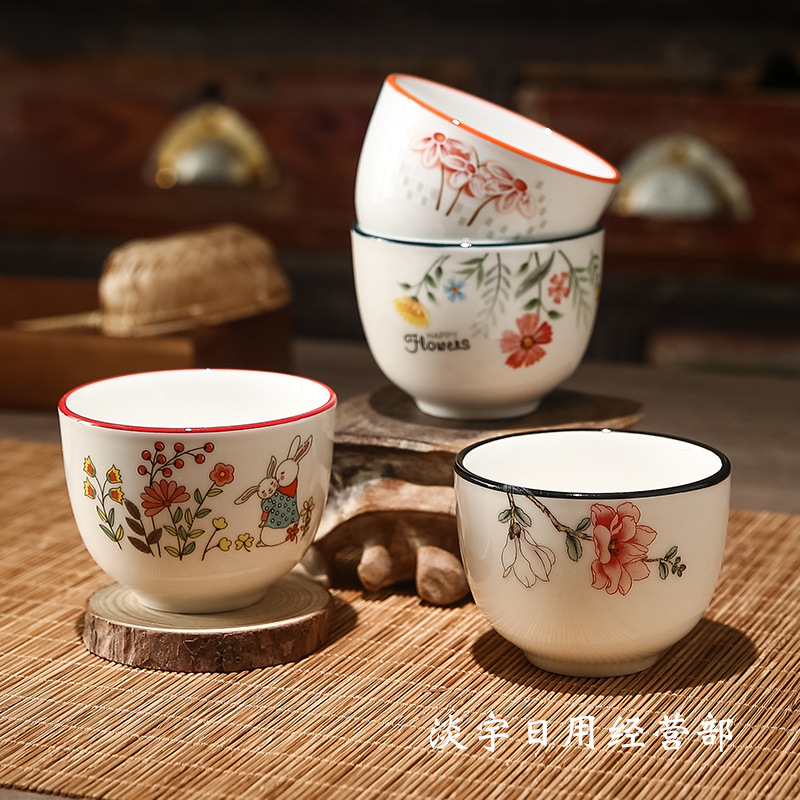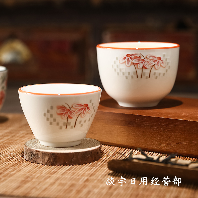 Jiangzhong 컵 세라믹 차 컵 가정용 입 컵 도자기 작은 차 컵 차 컵 중국 스타일 쿵푸 차 세트 마스터 컵 물 컵스토어 가기