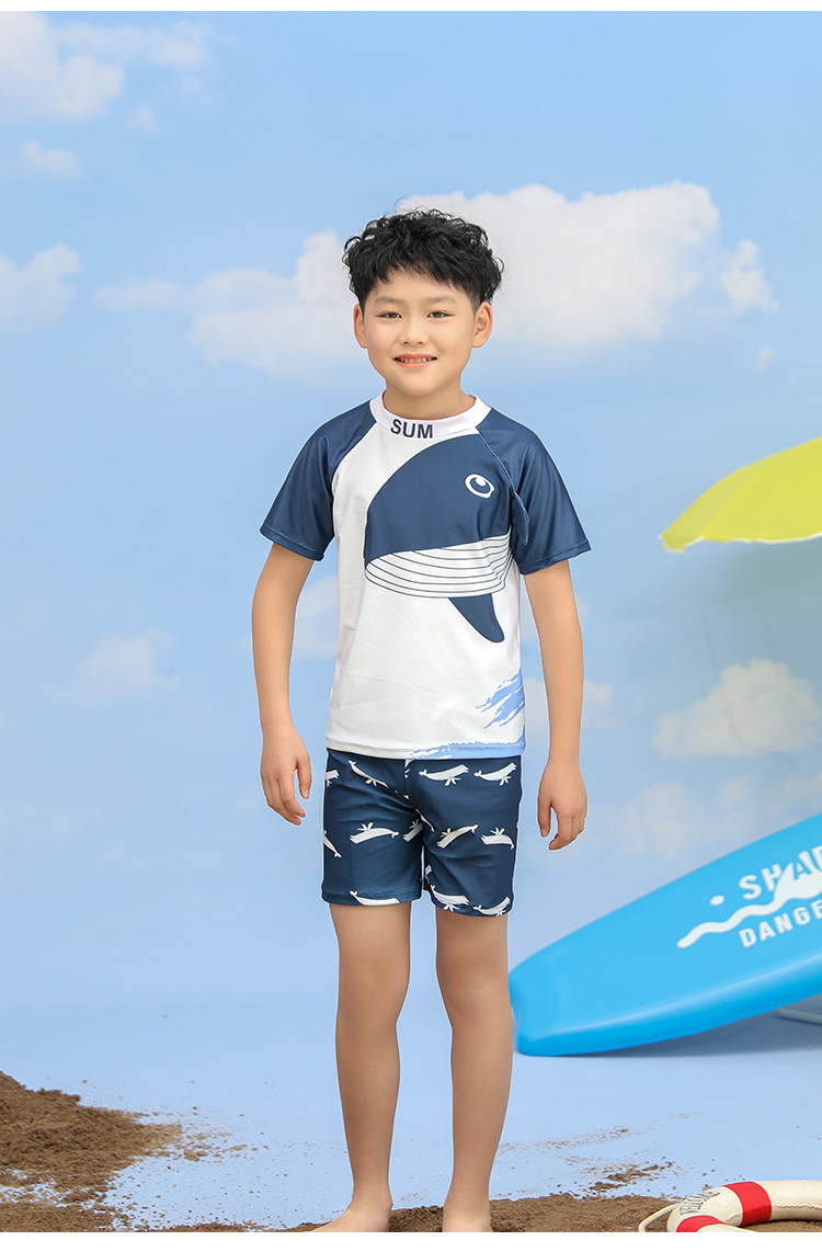 어린이 수영복 남아 스플릿 투피스 세트 소형, 중형 및 대형 어린이 태양 보호 속건 수영복 바지 귀여운 아기의 온천 수영복