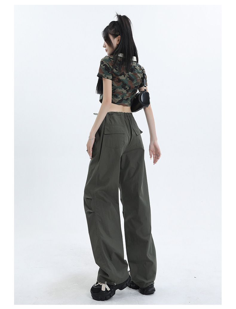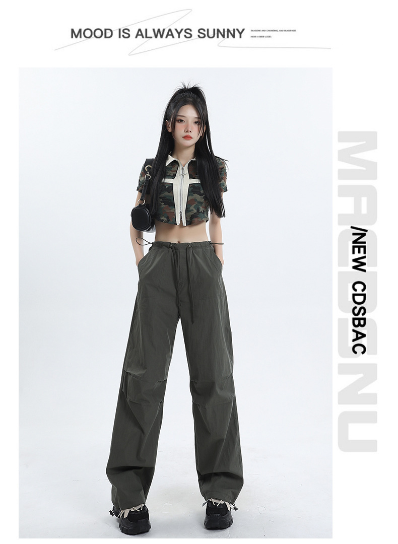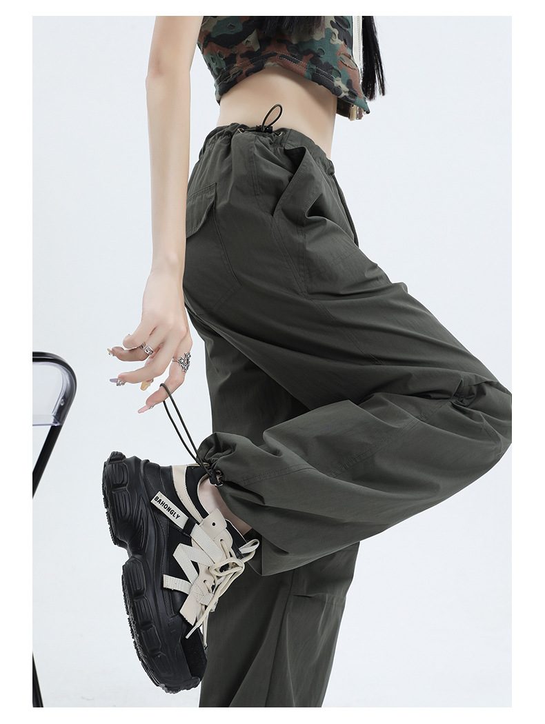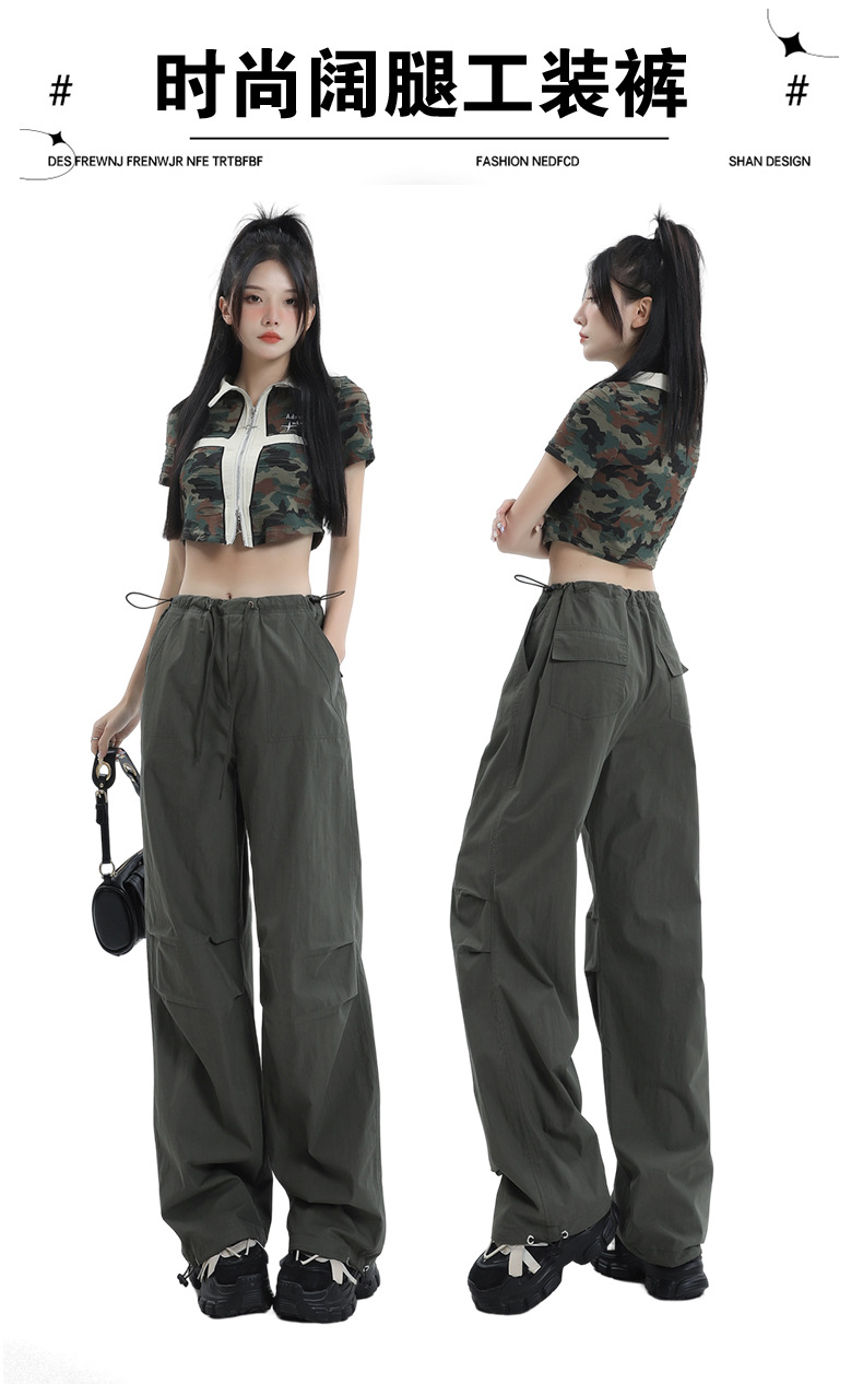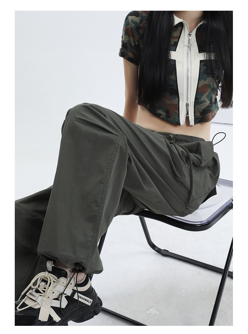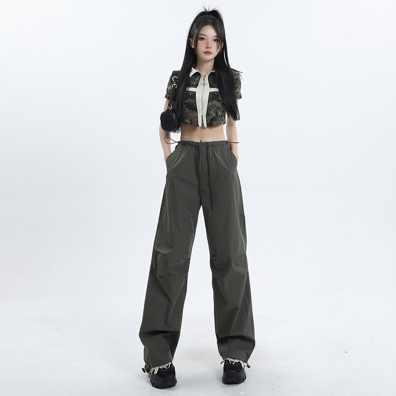 얇은 작업복 캐주얼 바지 여성용 틈새 디자인 발목 바지 바닥 바지 와이드 다리 바지 충전 종이 가방 바지 여름 얇은 바지