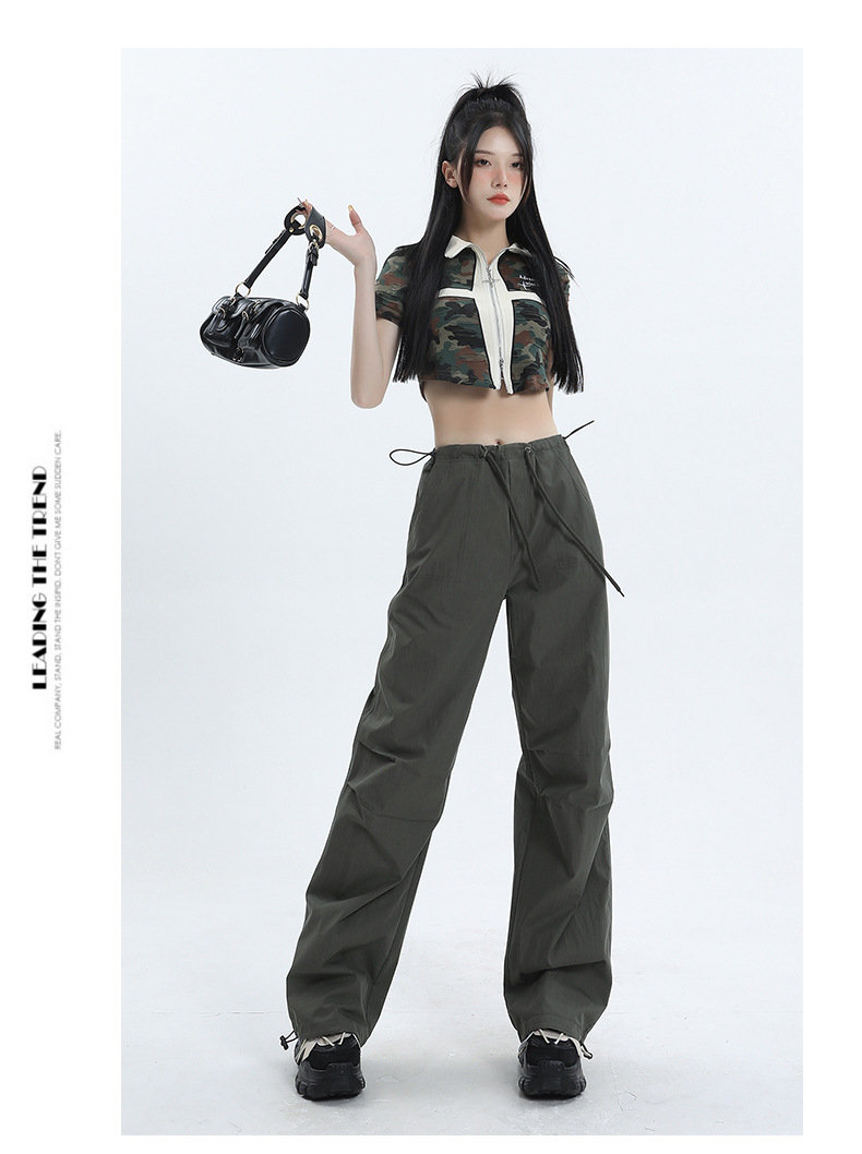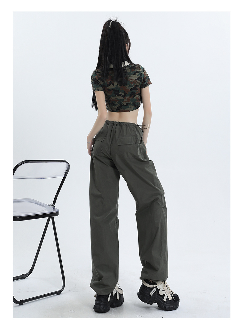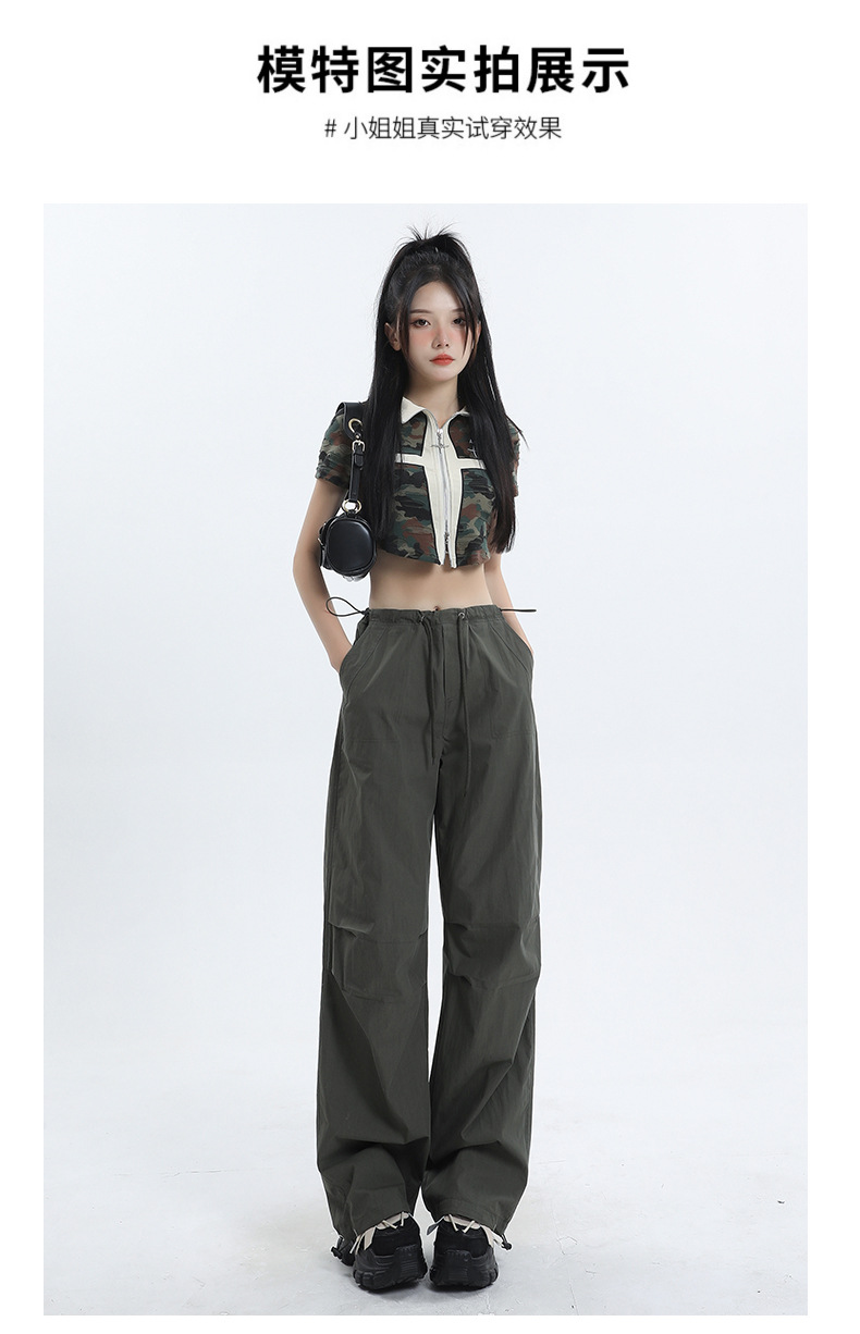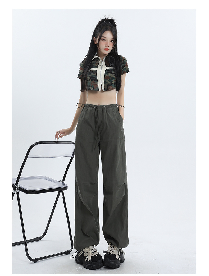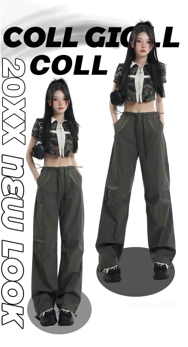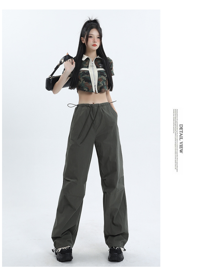 얇은 작업복 캐주얼 바지 여성용 틈새 디자인 발목 바지 바닥 바지 와이드 다리 바지 충전 종이 가방 바지 여름 얇은 바지