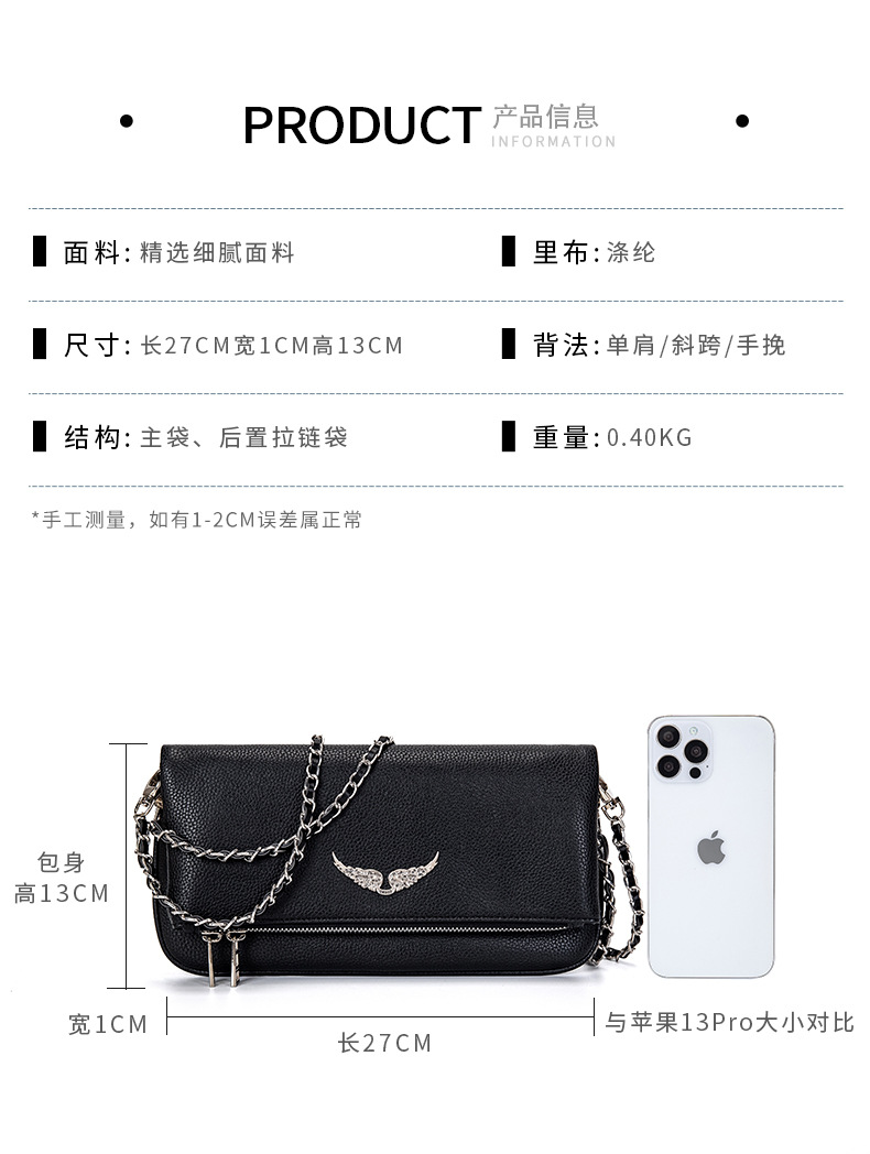 ZV 프랑스 정교한 여성 가방 패션 윙스 스페인 체인 크로스백 봉투형 여성 해외 무역 숄더백스토어 가기