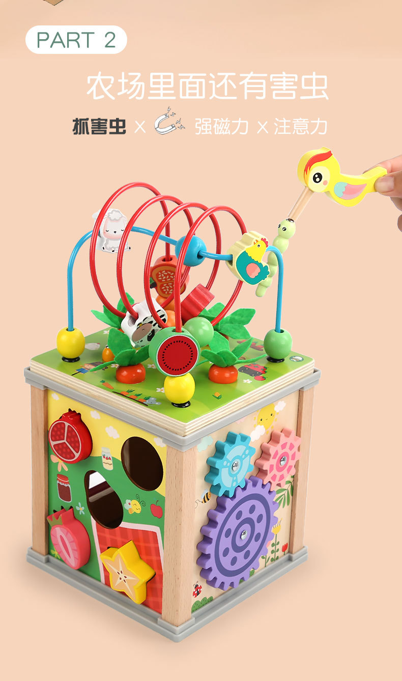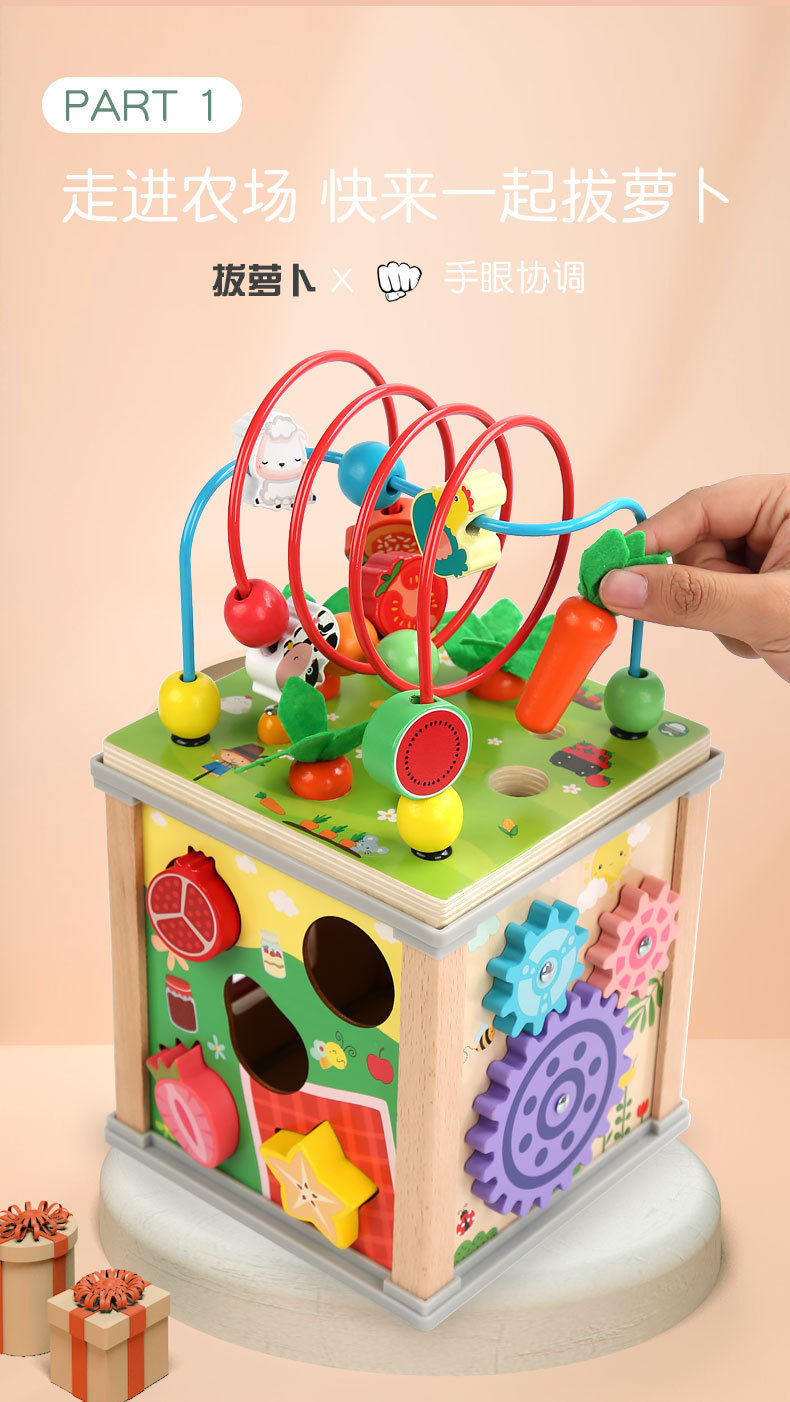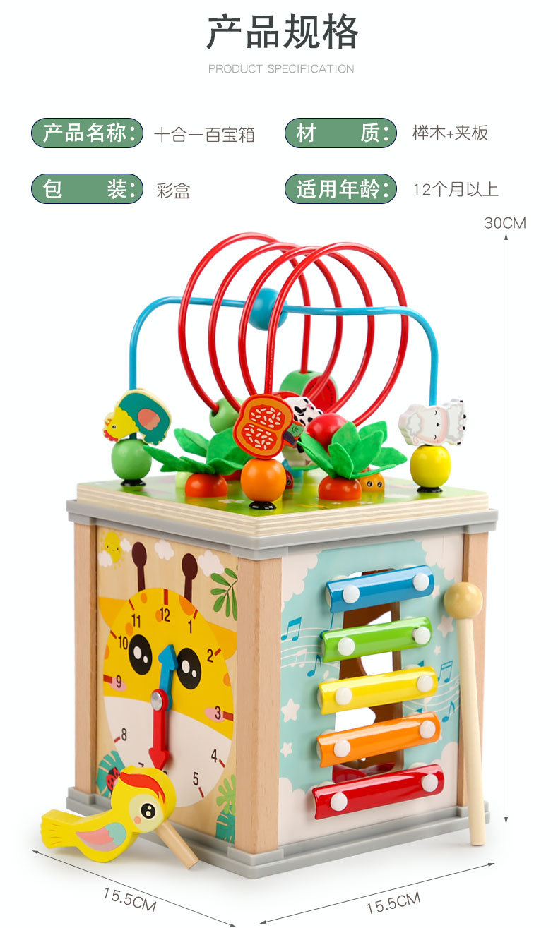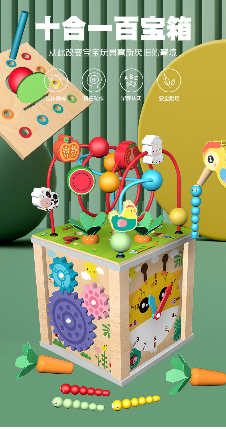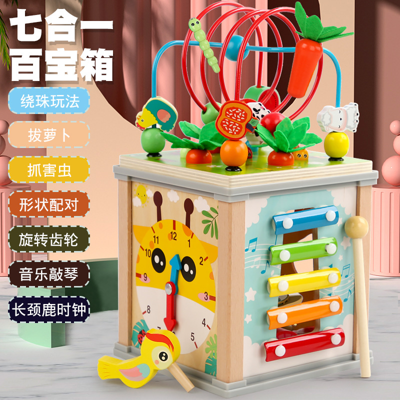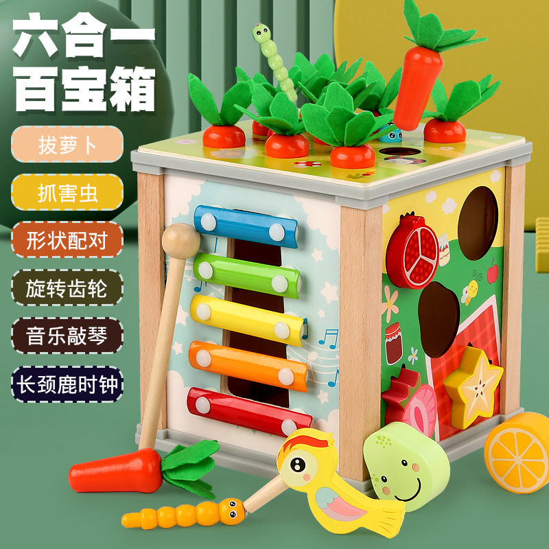 나무 다기능 6 대 1 백 보물 상자 무를 잡아 당기고 웜 모양을 맞추는 음악 녹아웃 어린이 교육 완구스토어 가기