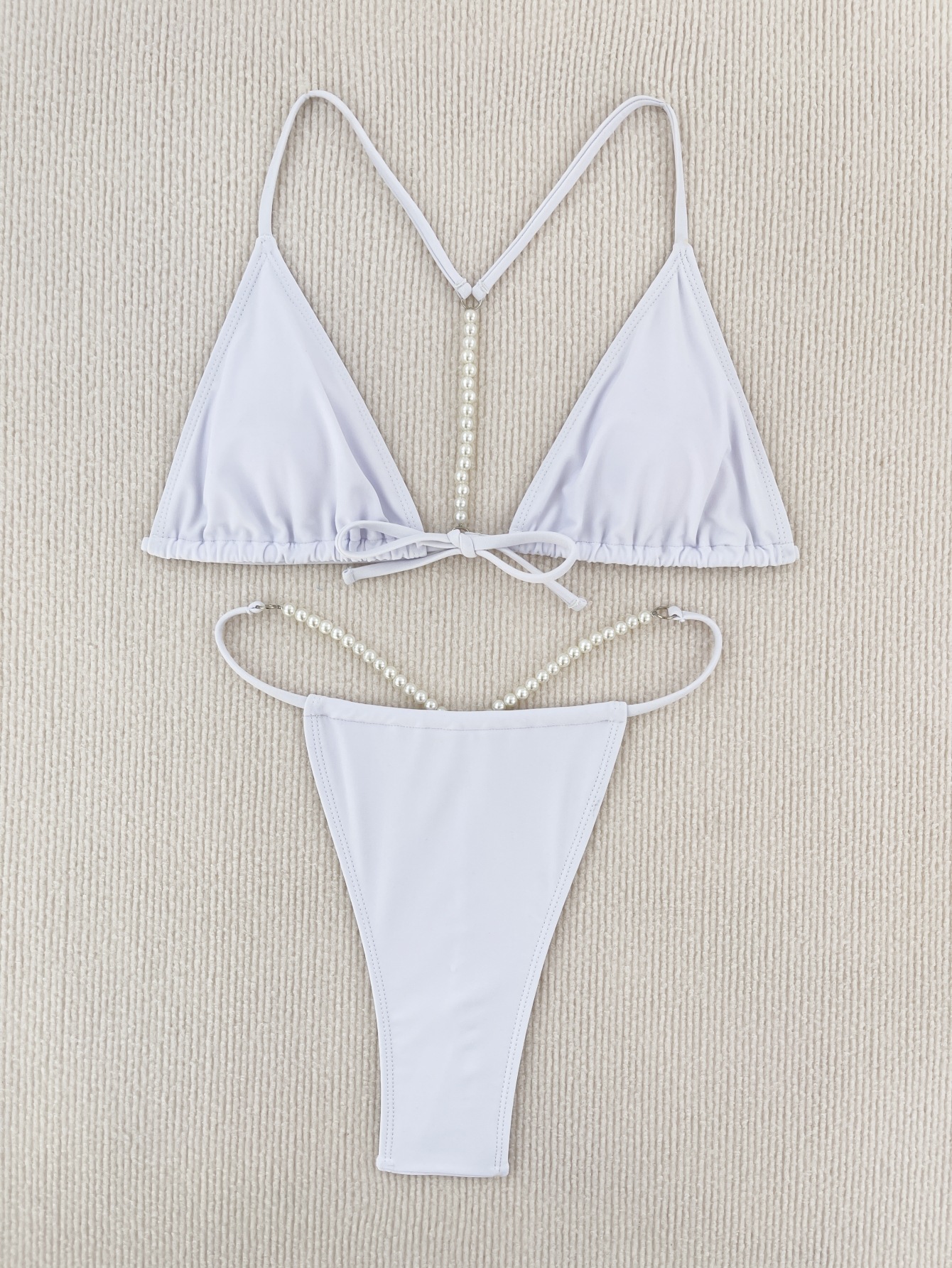 세트 유럽과 미국 새로운 2023 섹시 비키니 진주 체인 단색 수영복 소원 독립 역 크로스 보더 LG203스토어 가기